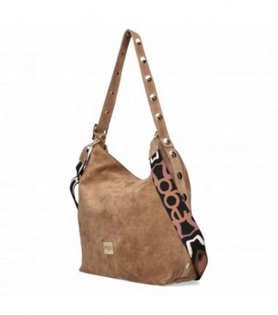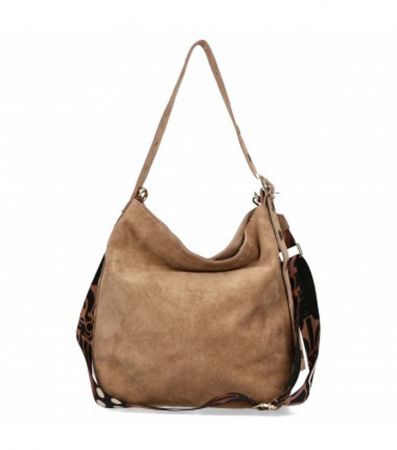 Естествен велур дамска чанта в бежов цвят с една преграда ch0289vbj