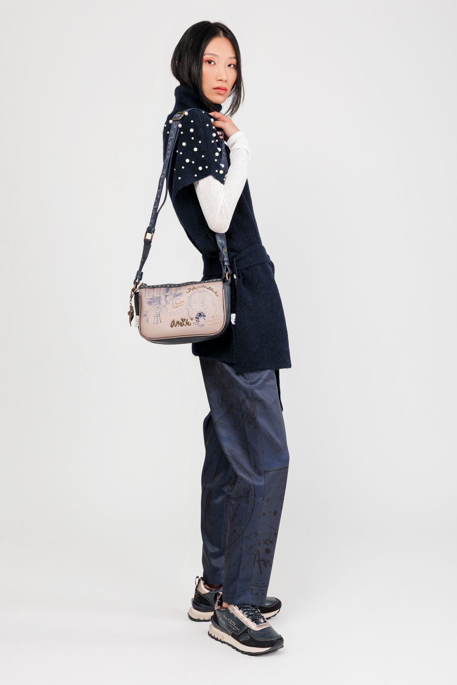 ANEKKE ежедневна дамска чанта в син и бежов цвят със закачлив принт ch41843-183