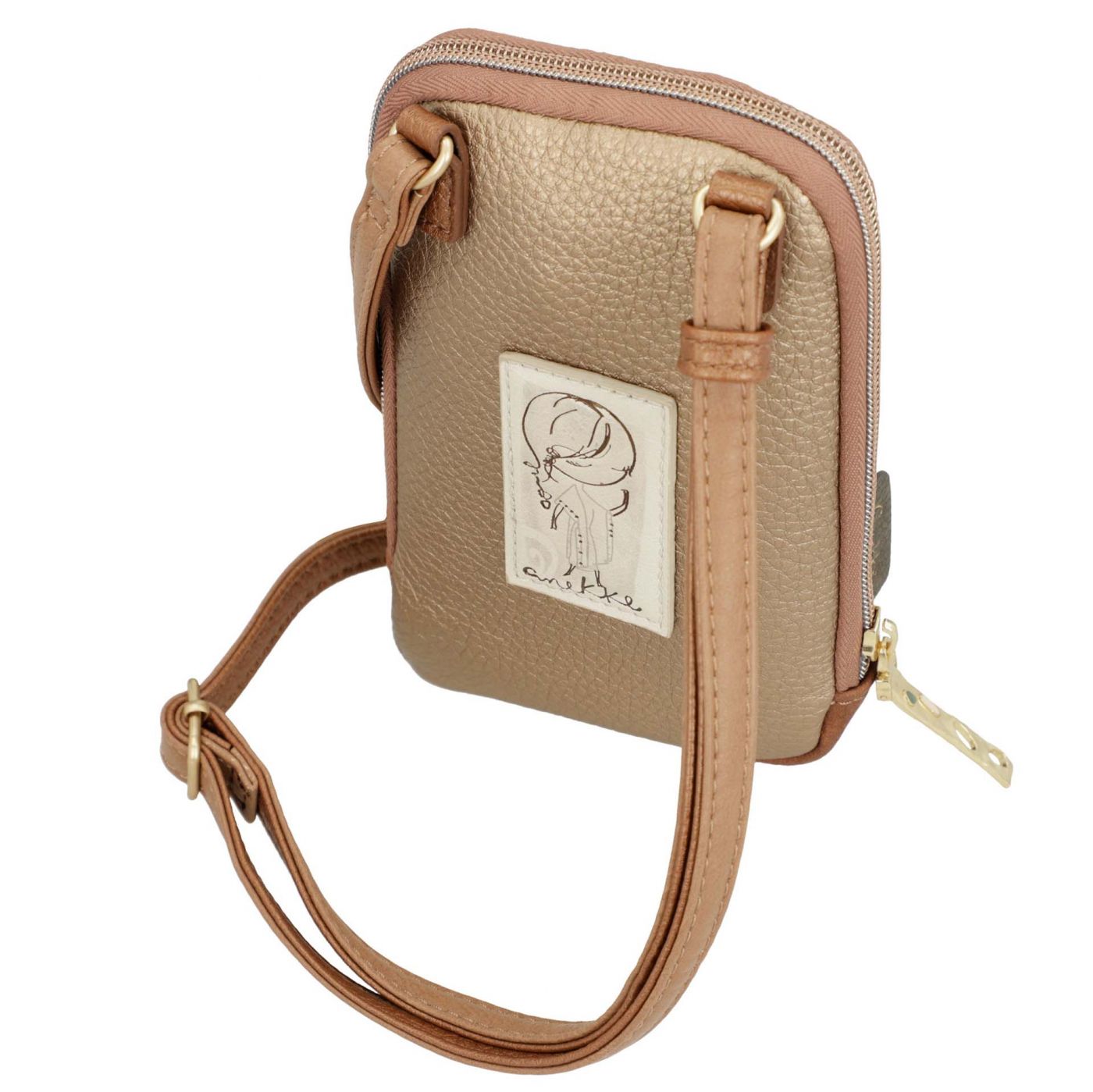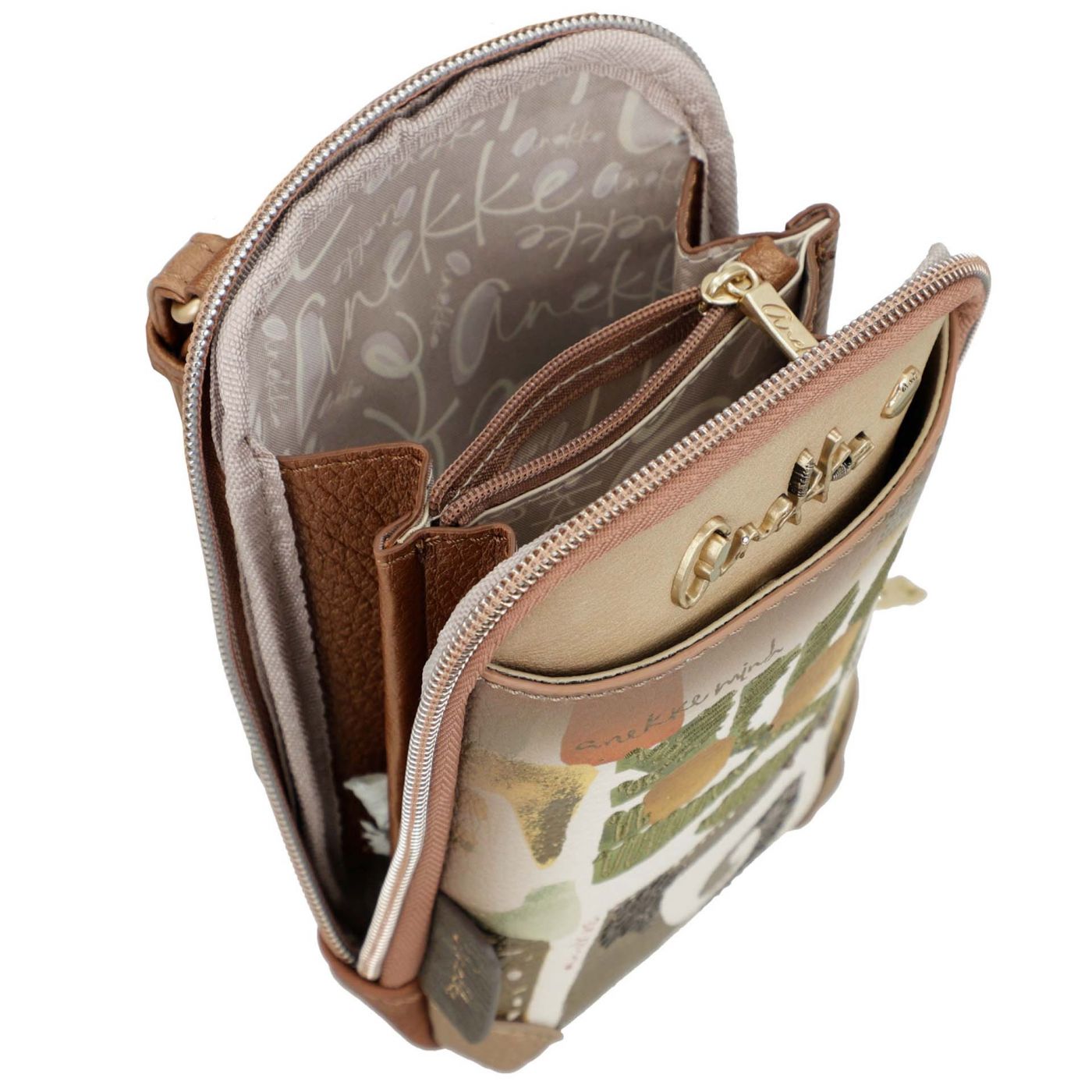 Малка бежова дамска чанта с атрактивна цветна щампа и дълга дръжка ANEKKE ch42713-911