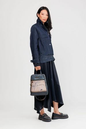 Дизайнерска дамска раница в син цвят с преден бежов джоб и една преграда ch41845-018