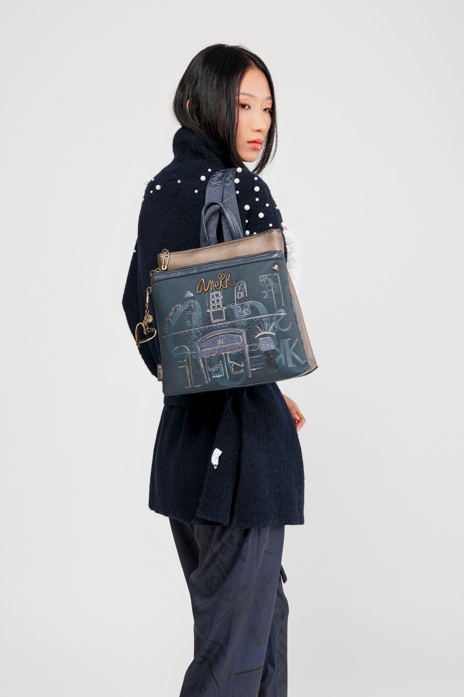 Стилна дамска раница в син цвят и атрактивен принт ANEKKE ch41855-233