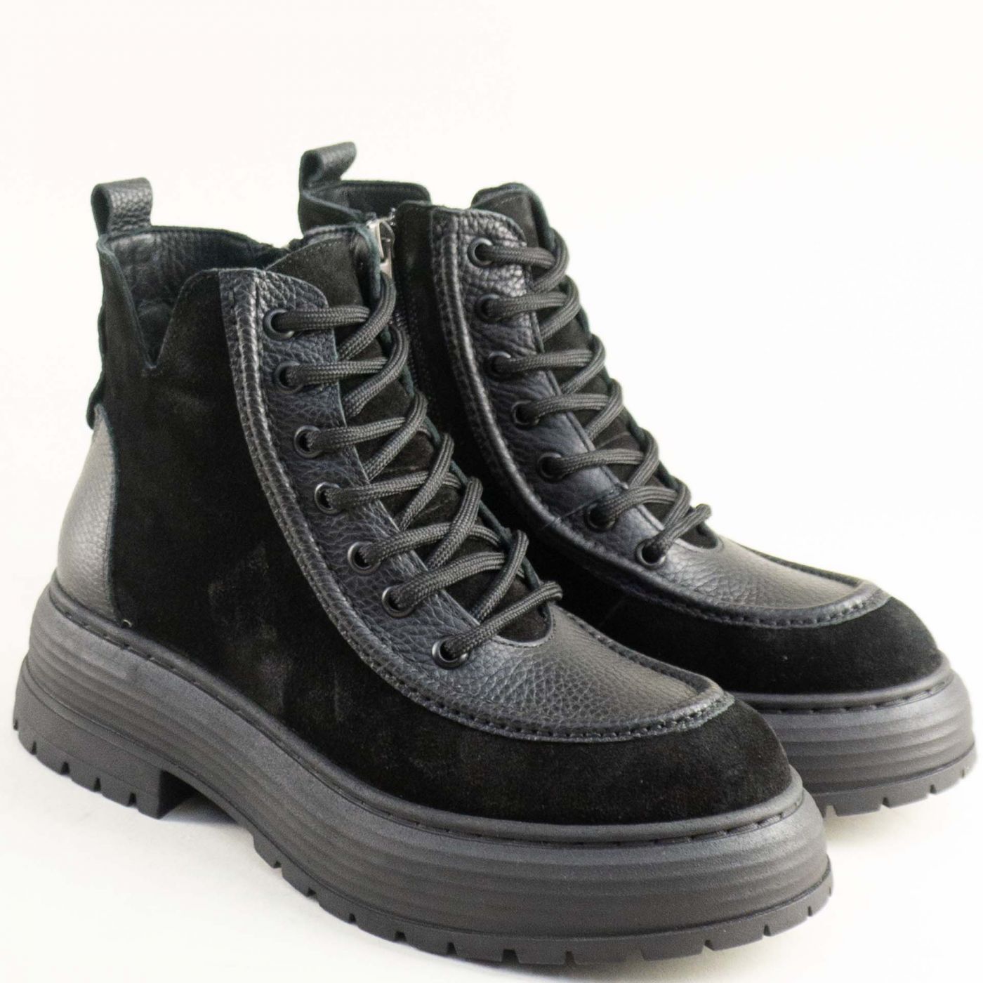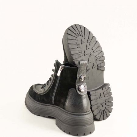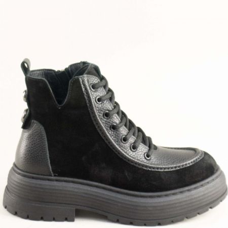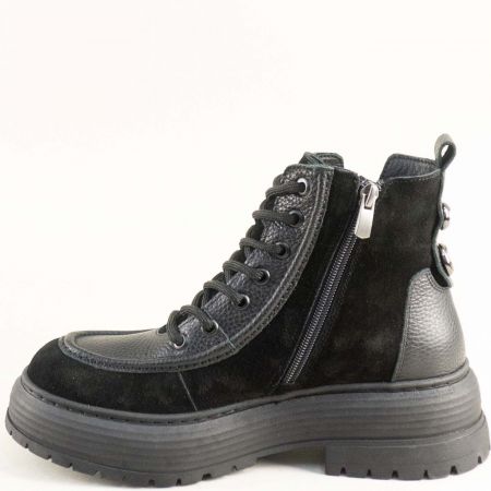 Черни дамски боти в комбинация от естествен велур и кожа 02425101vch
