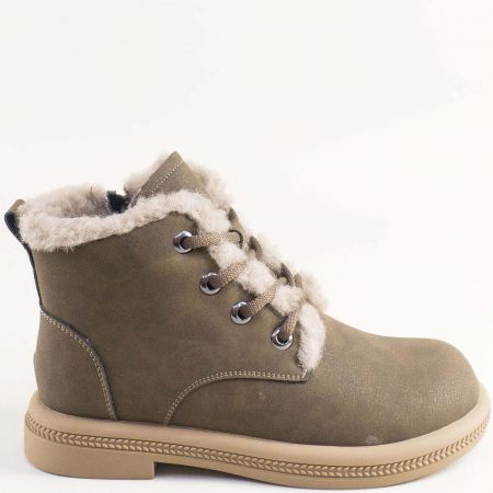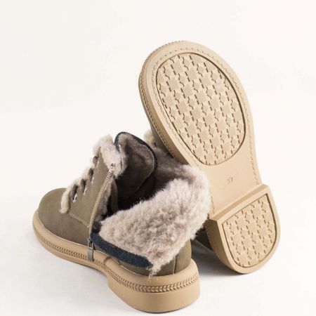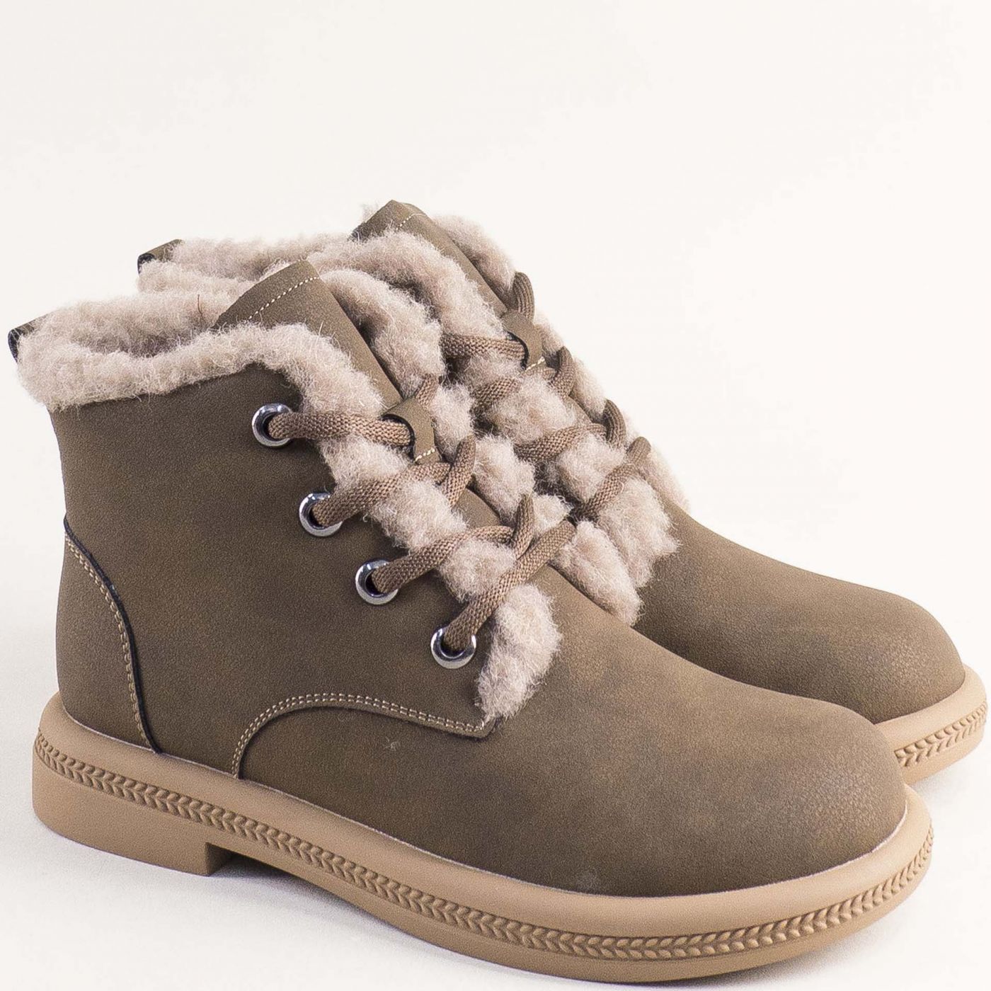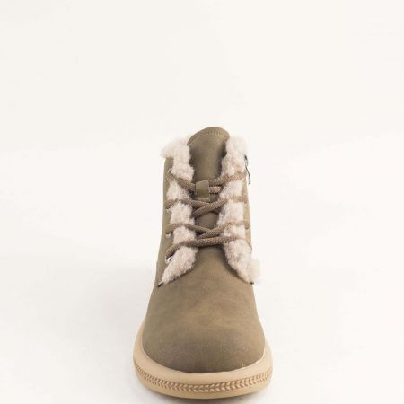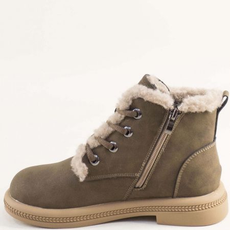 Естествен набук дамски боти на нисък ток в кафяв цвят 043269nk