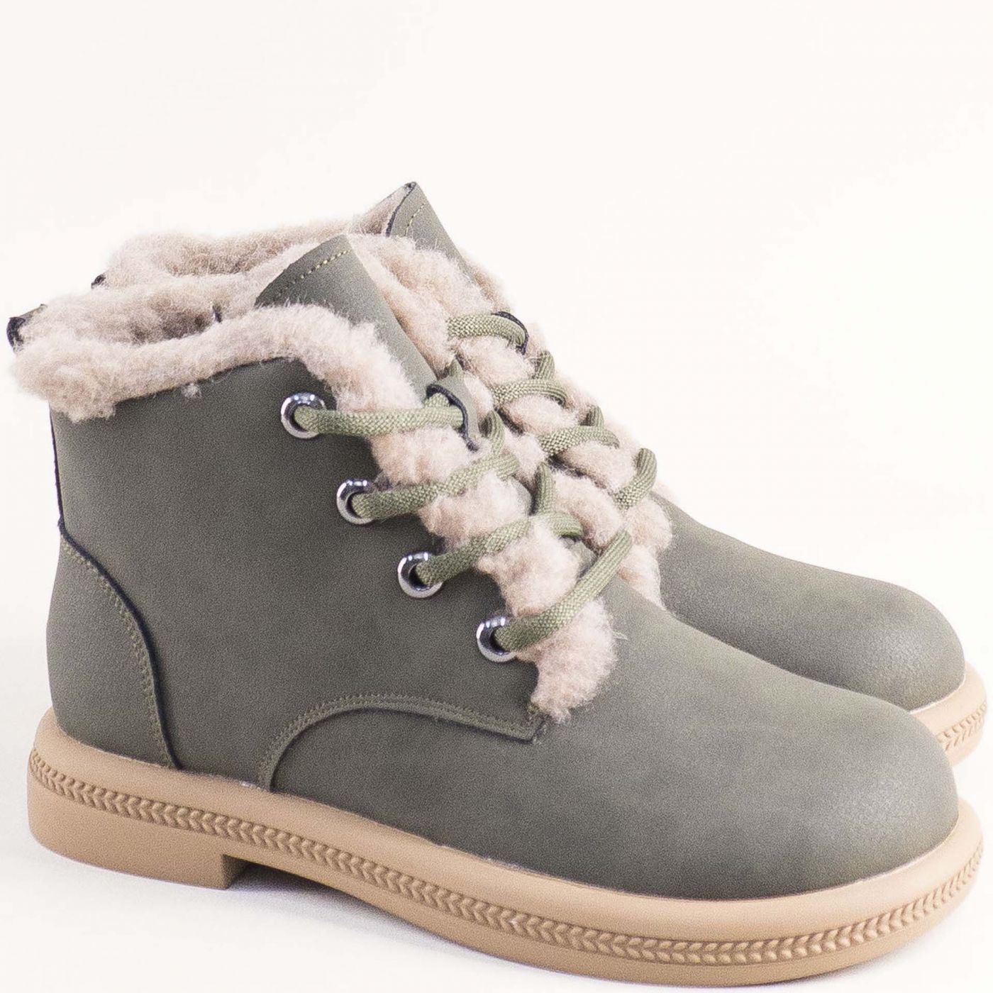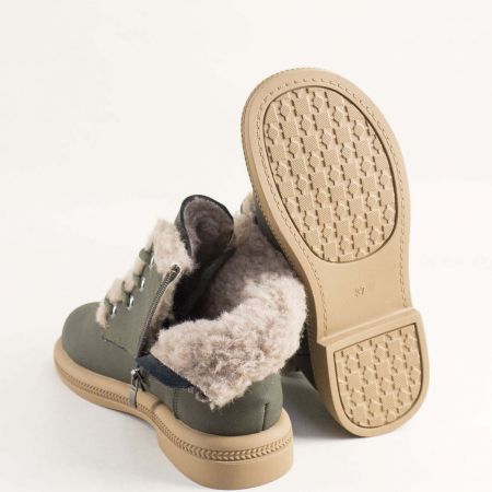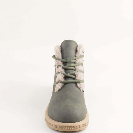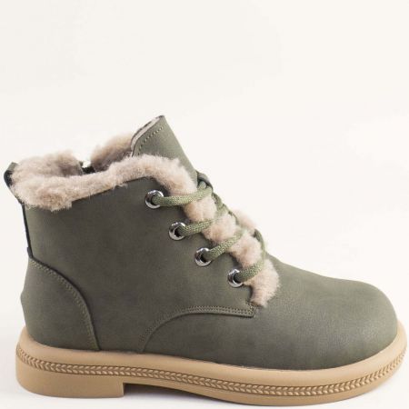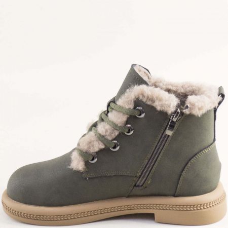 Зелени дамски боти с топъл хастар от естествен набук с връзки и цип 043269nz