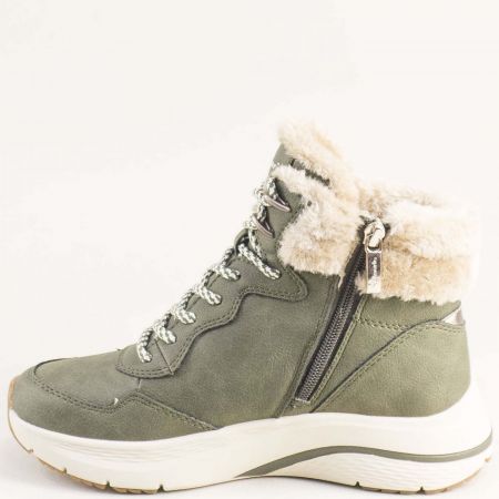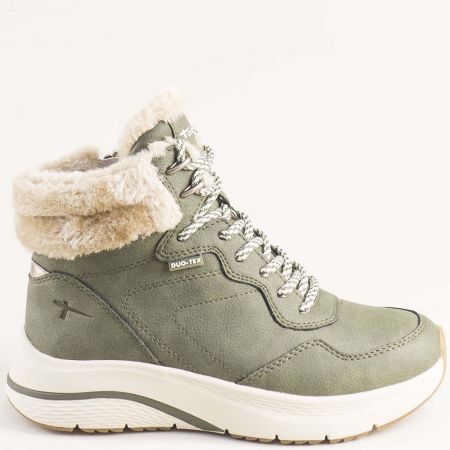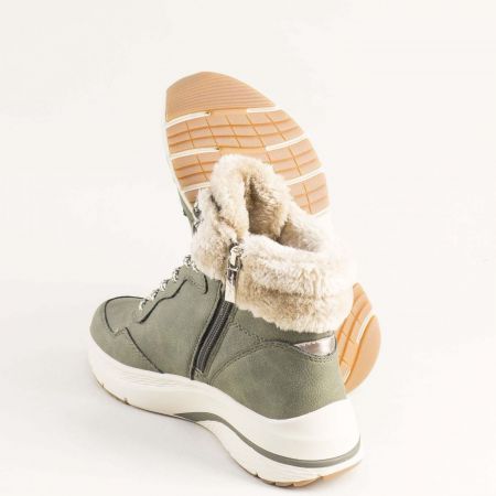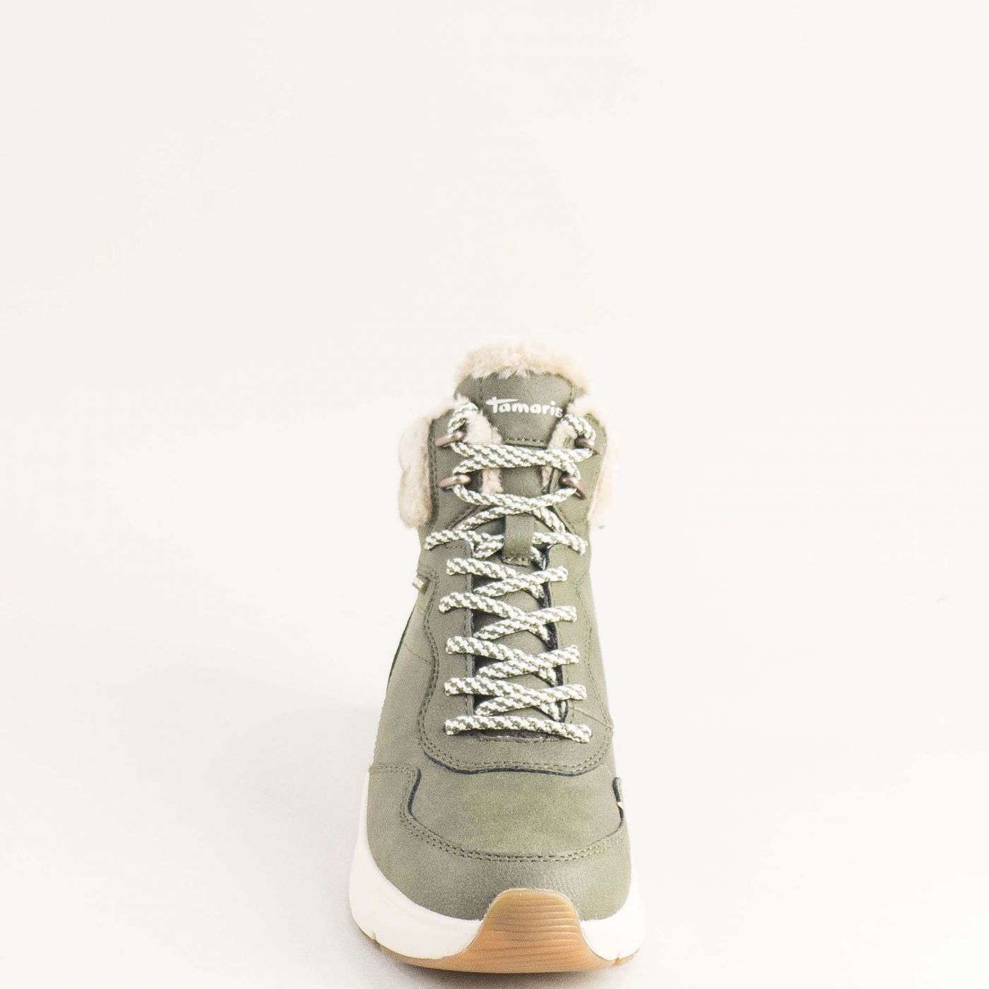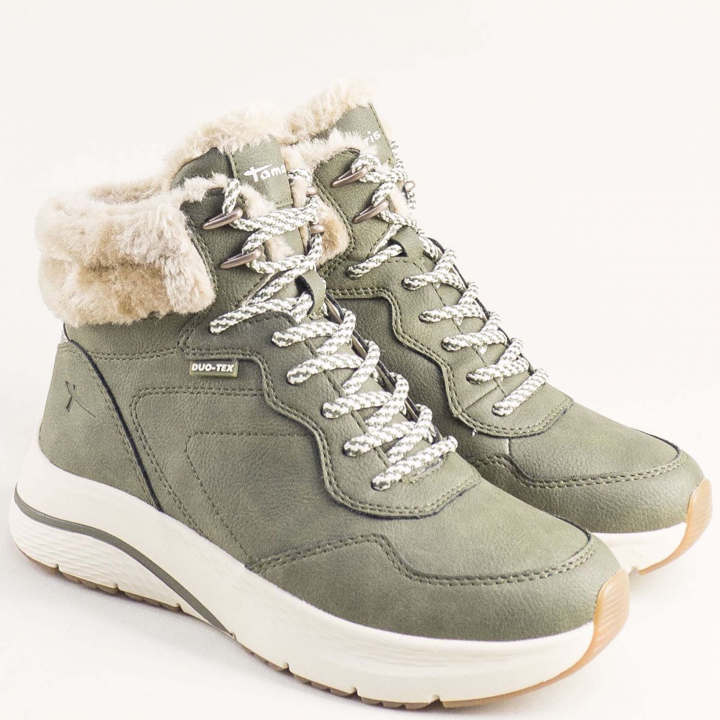 TAMARIS дамски зелени боти на бежово ходило със закачлив пух 1-26278-722