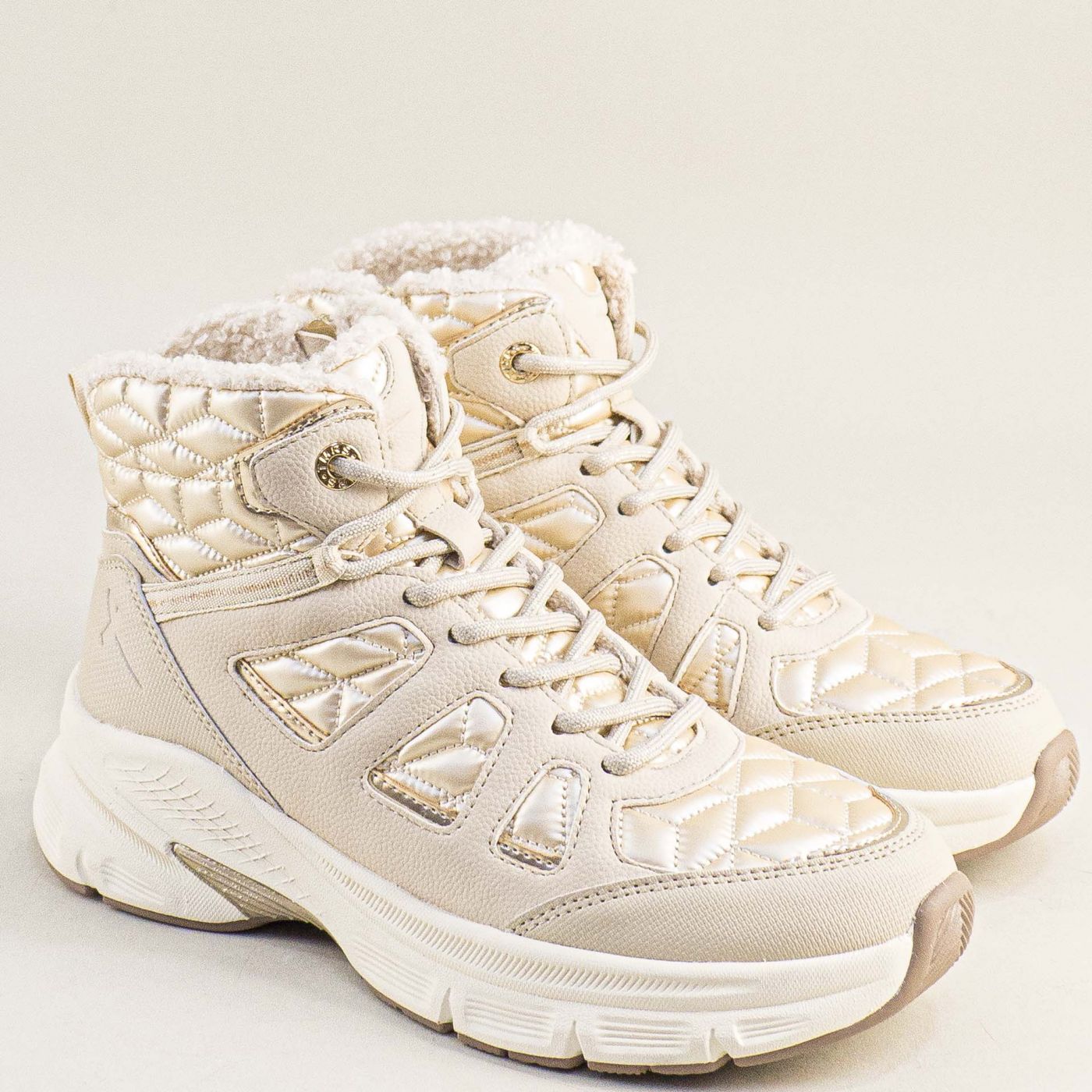 Спортни дамски боти TAMARIS в бежов цвят на платформа 1-26280-485