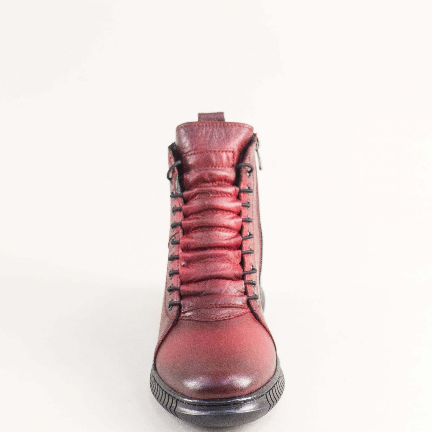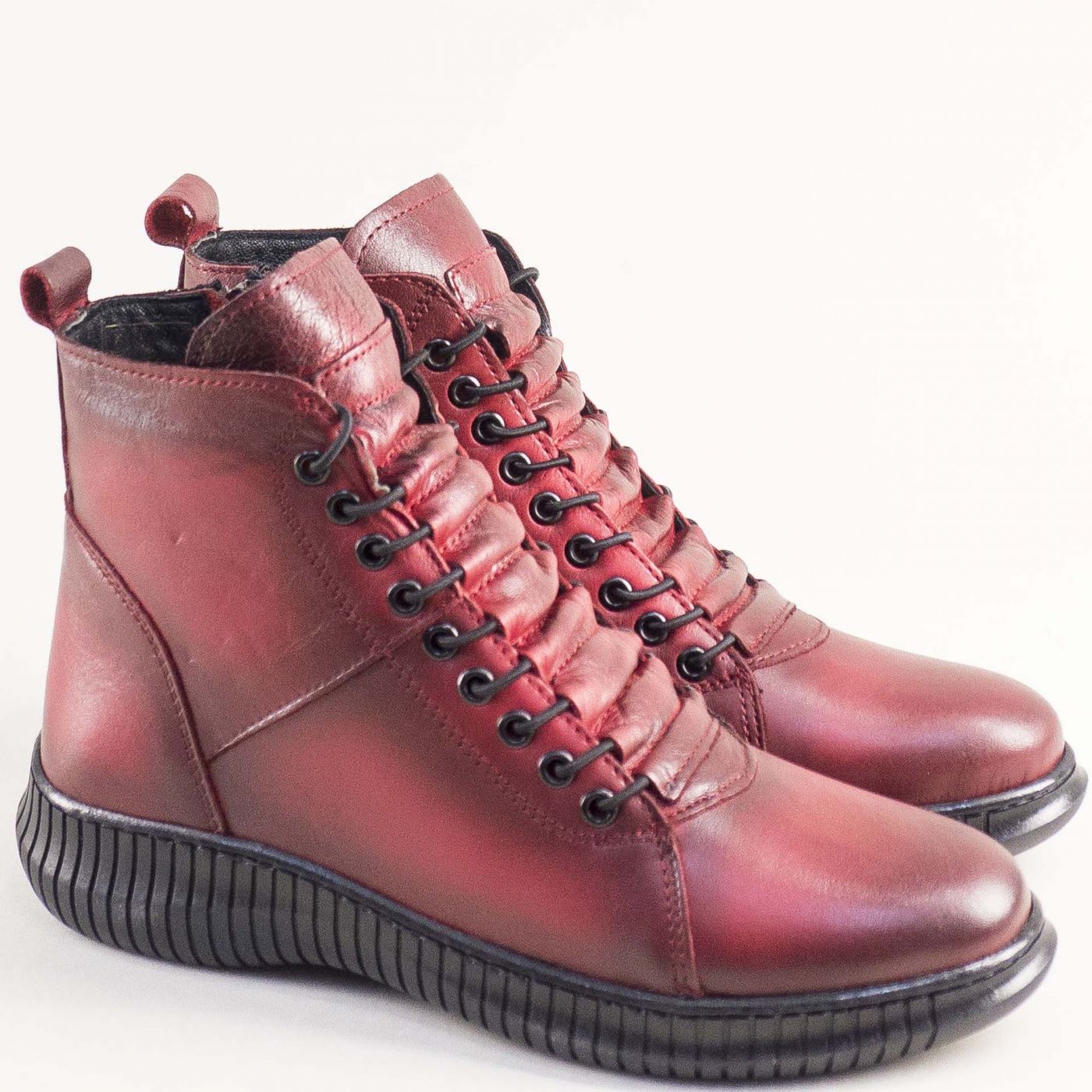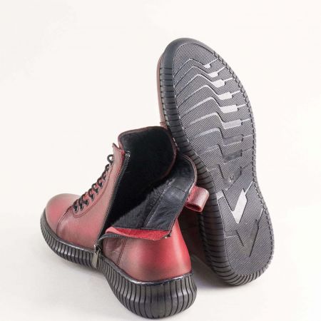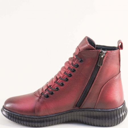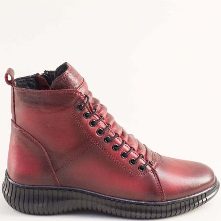 Кожени дамски боти с ластични връзки в модерен червен цвят 1009chv