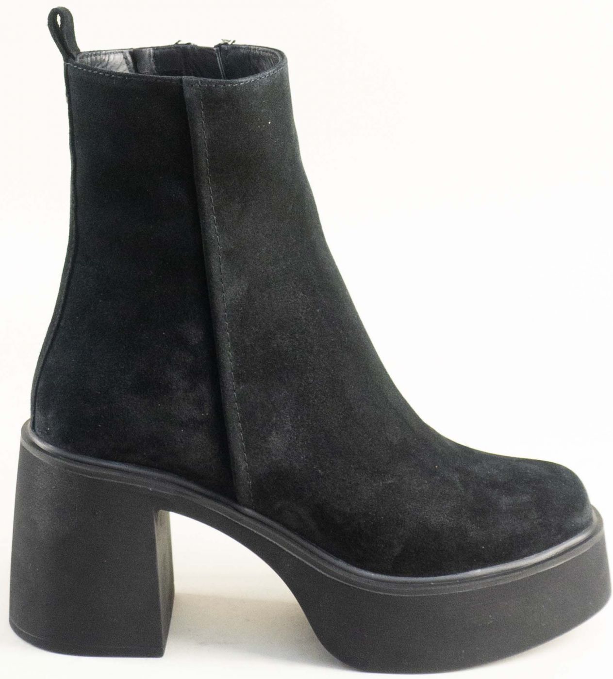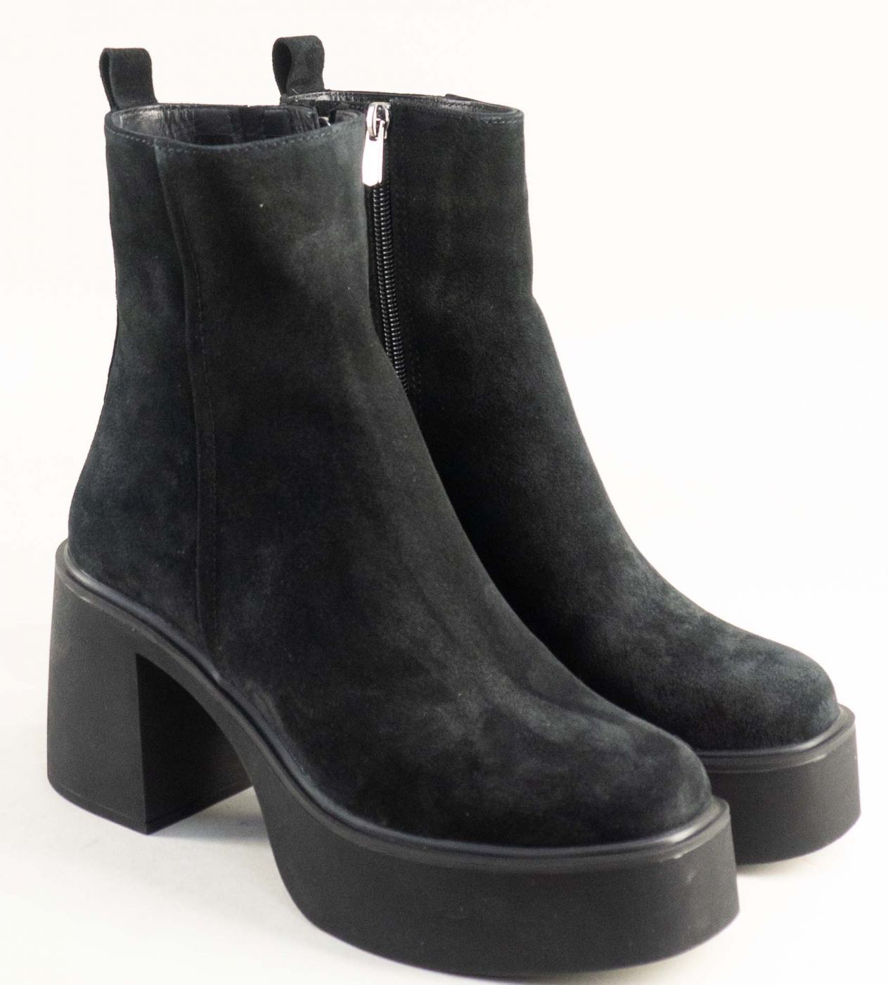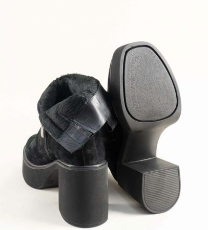 Модерни дамски боти от естествен велур в черен цвят на среден ток 20700nch
