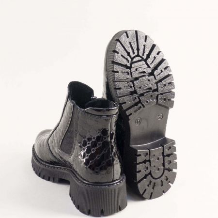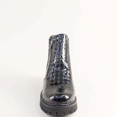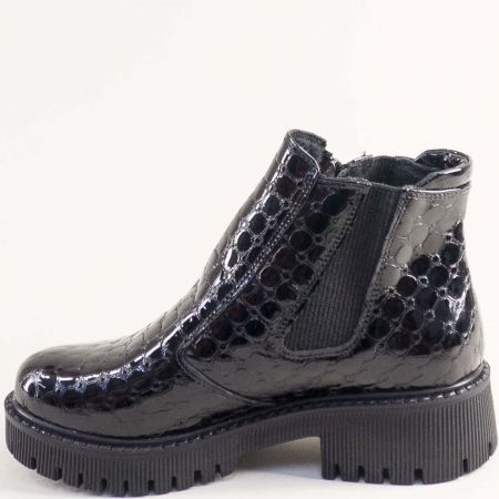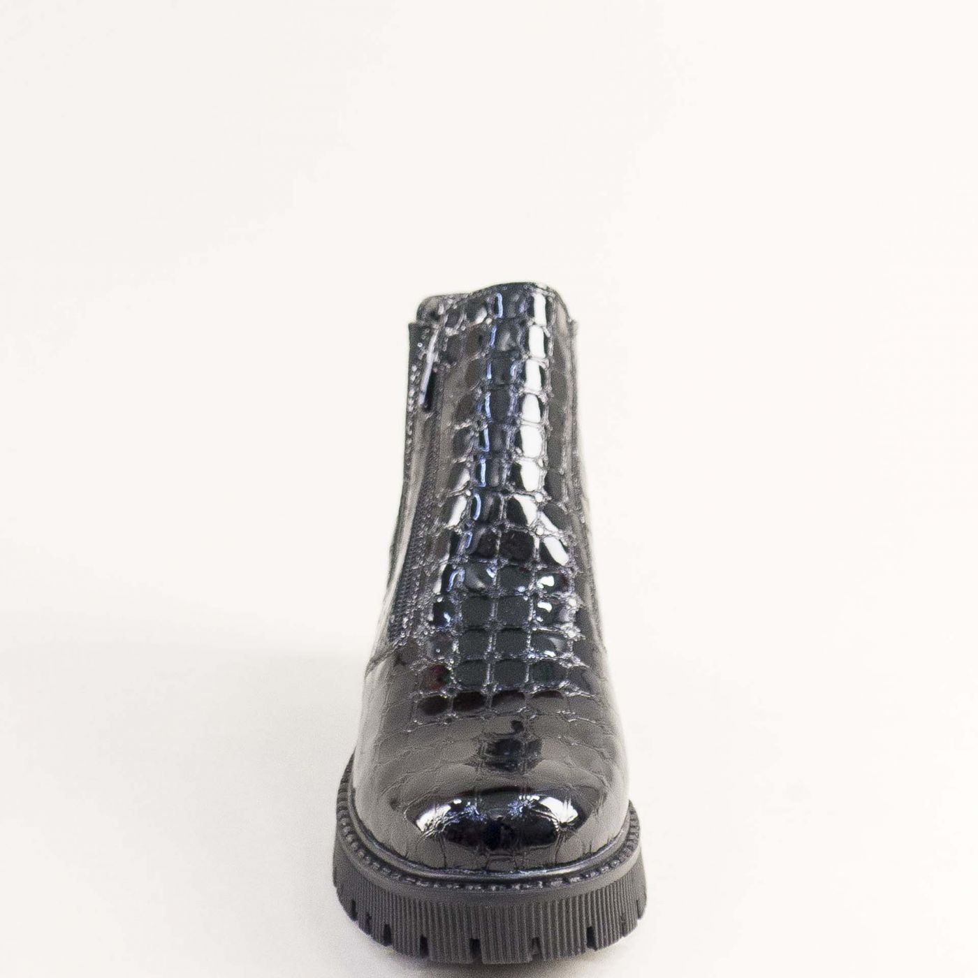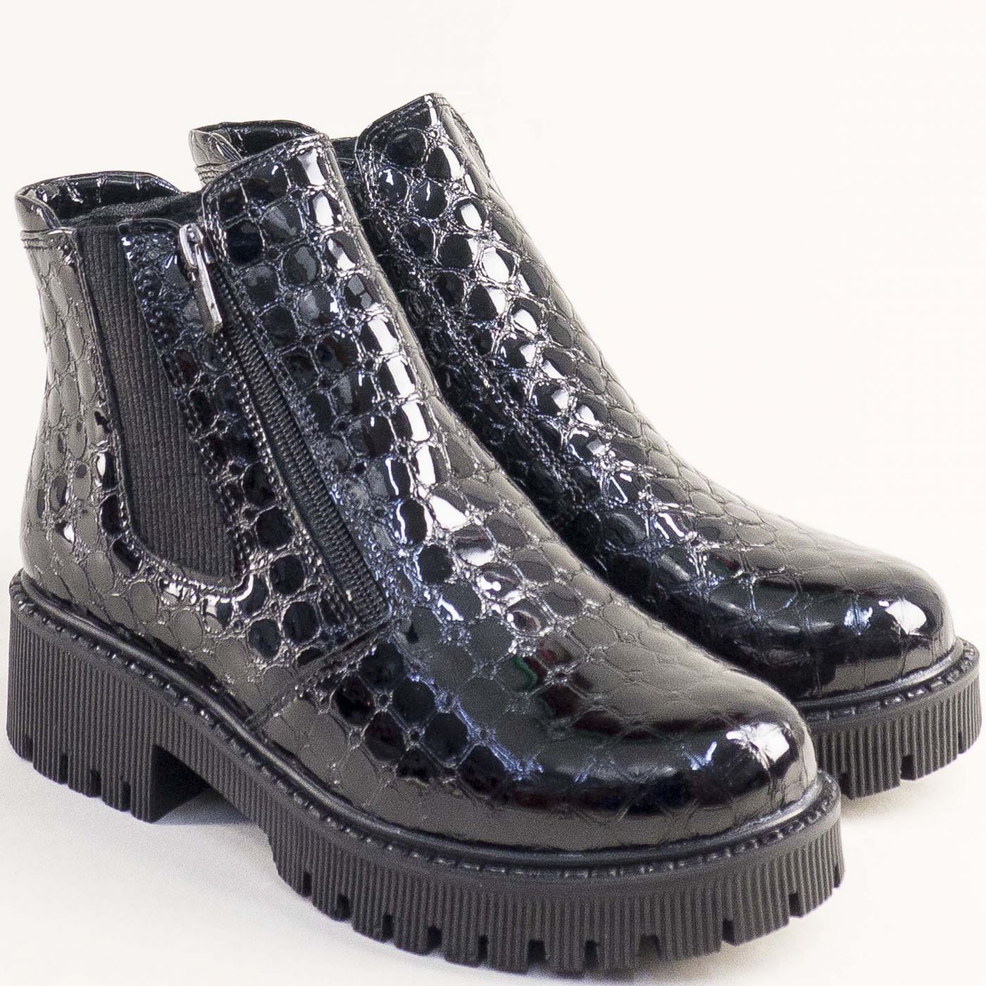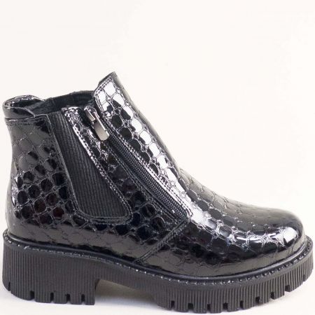 Кроко лак дамски боти на среден ток и платформа в черен цвят 41549krlch