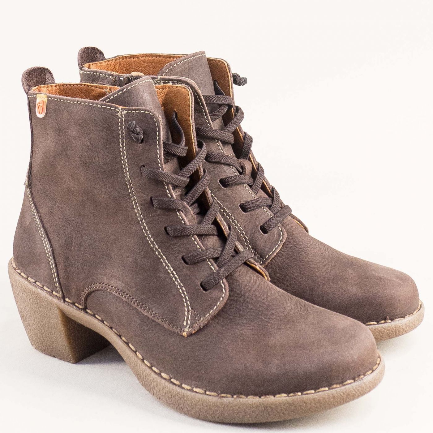 Естествен набук дамски боти на среден ток в модерен кафяв цвят JUNGLA 7512nkk