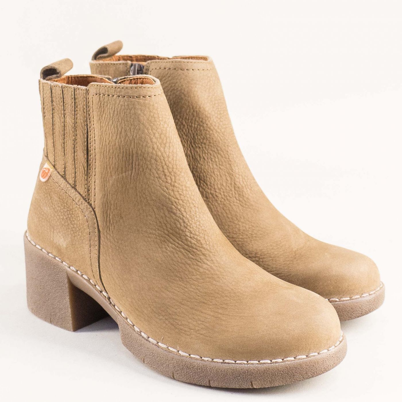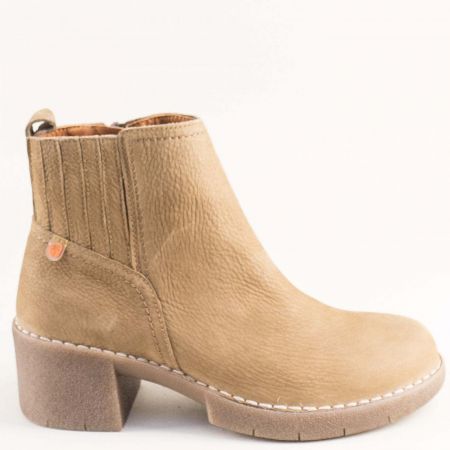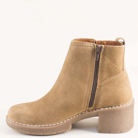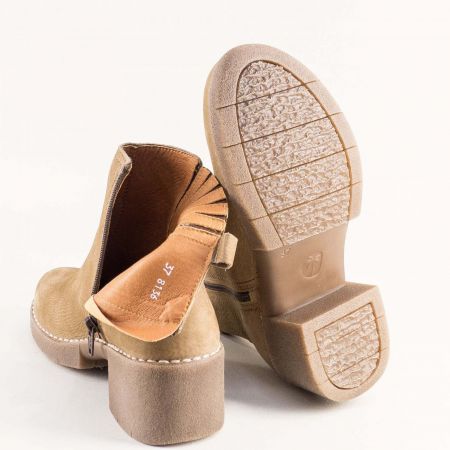 Дамски боти на среден ток и платформа в бежов цвят от естествен набук 8136nbj