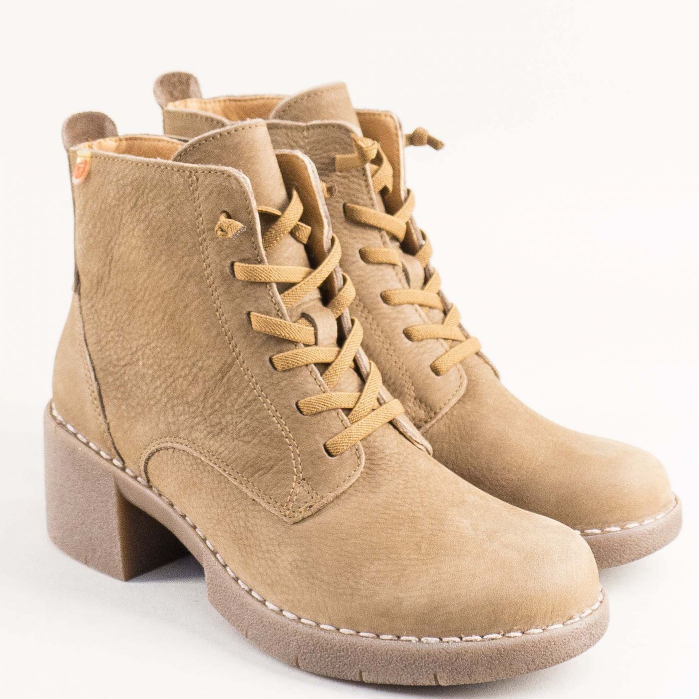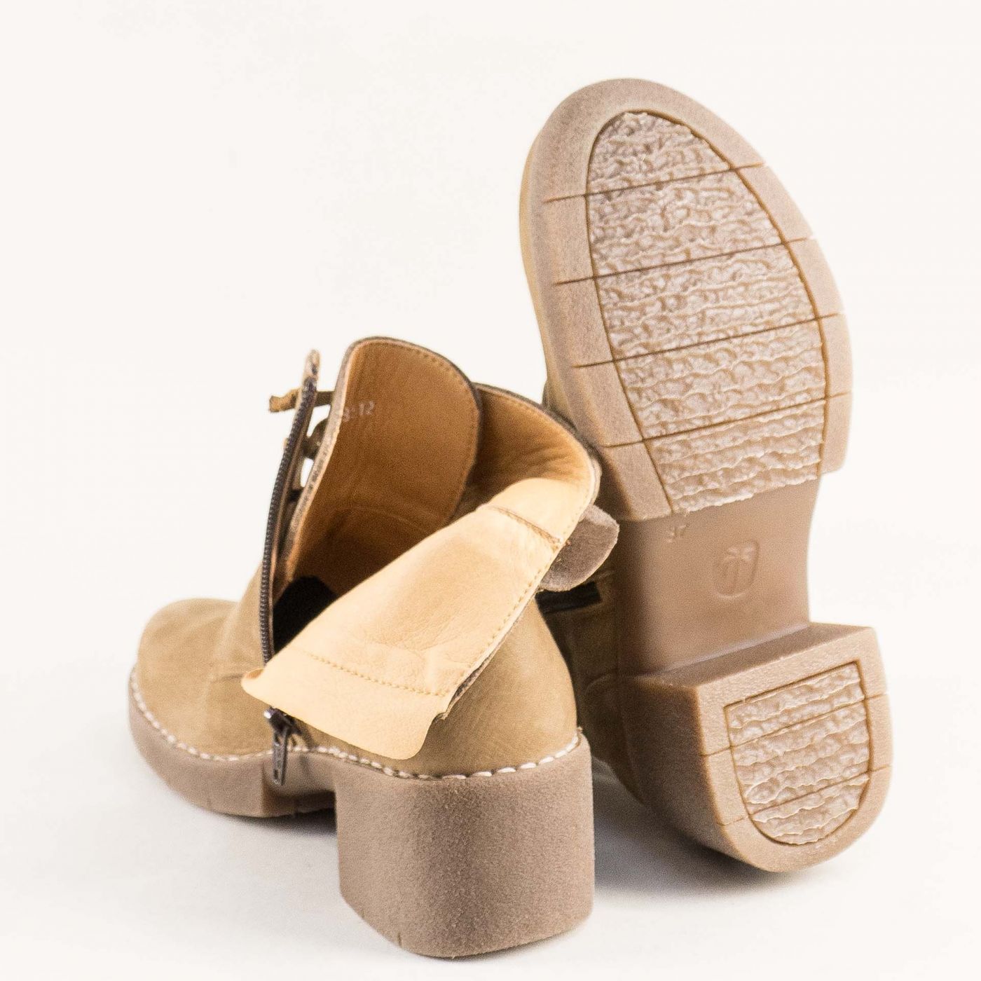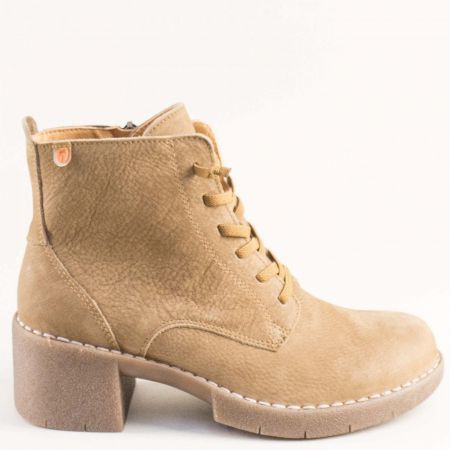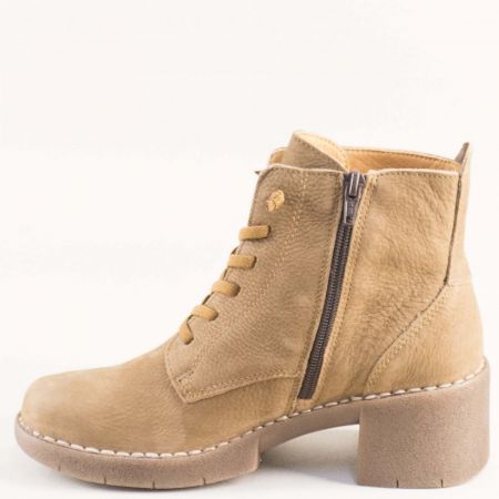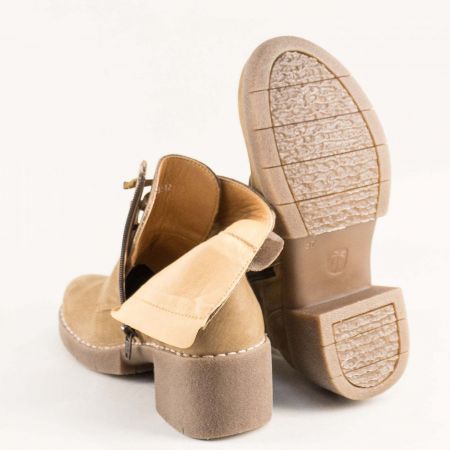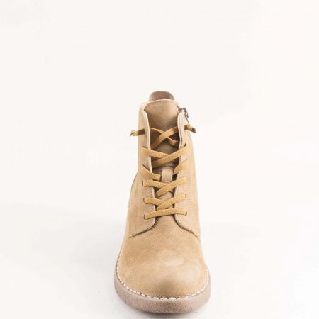 Кожени дамски боти с ластични връзки в бежов цвят JUNGLA на ток 8312nbj