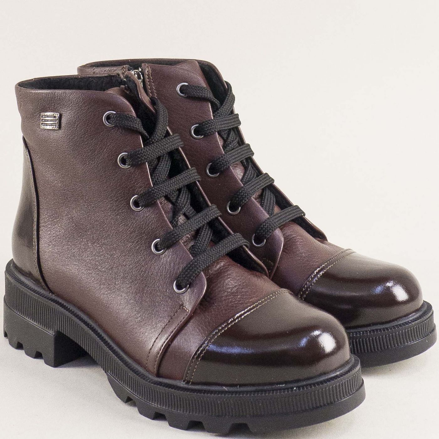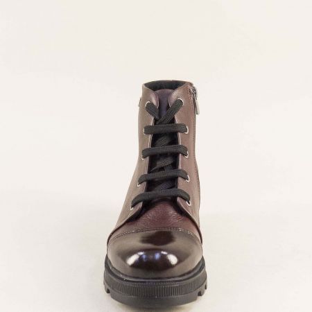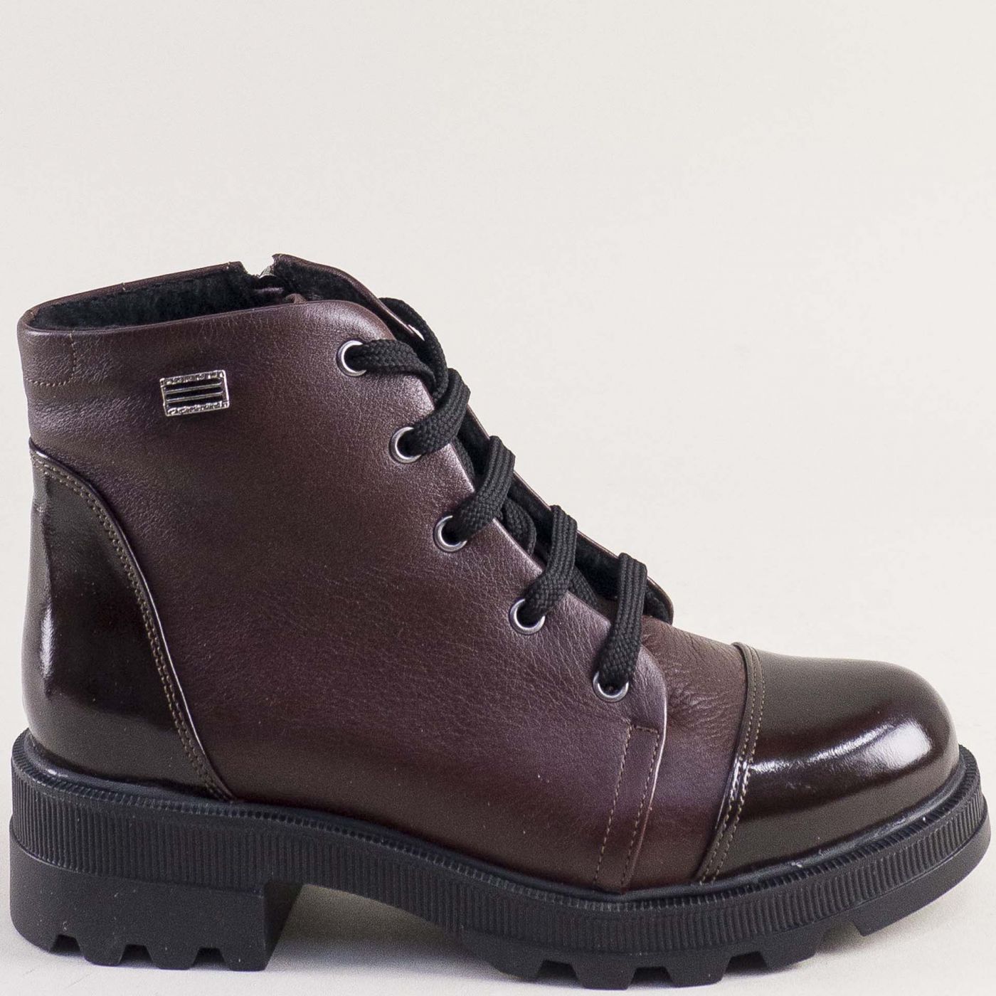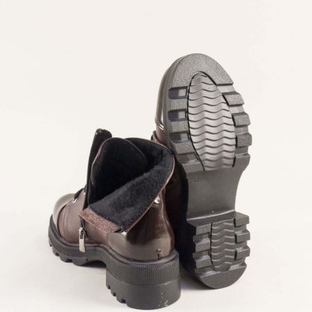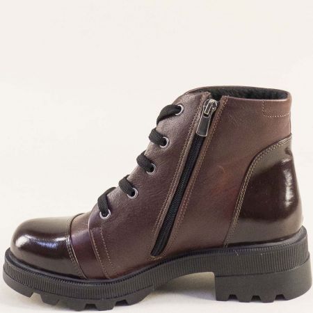 Кожени дамски боти на грайферно ходило в кафяв цвят с лачени елементи aj1054k