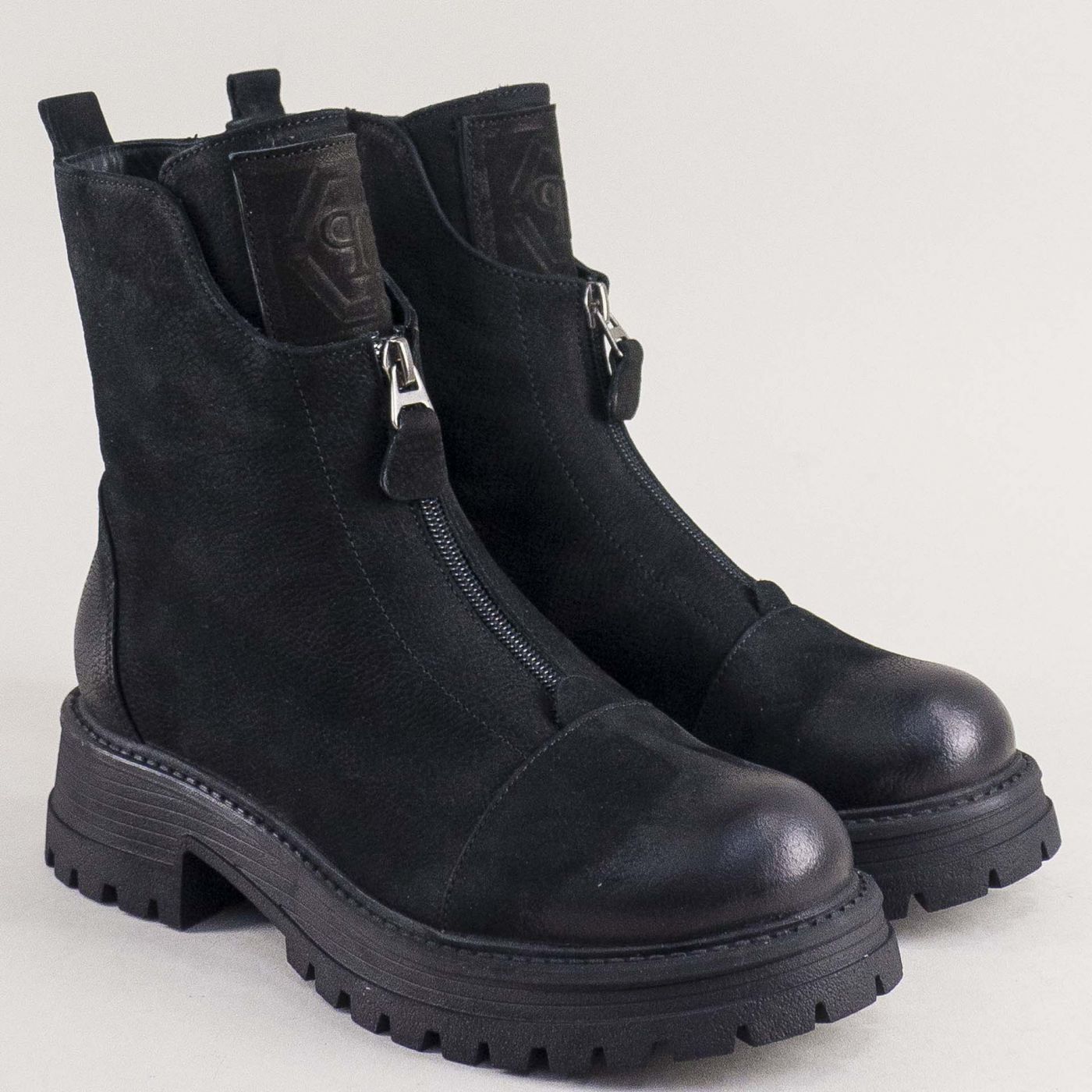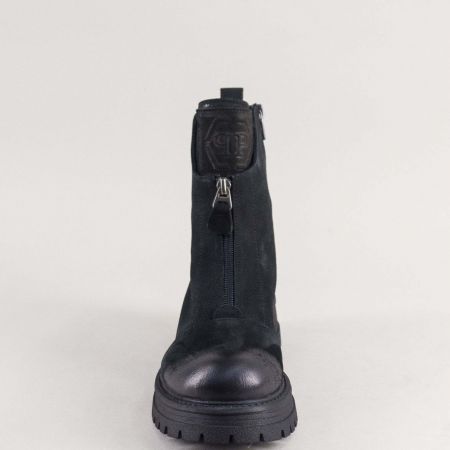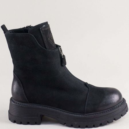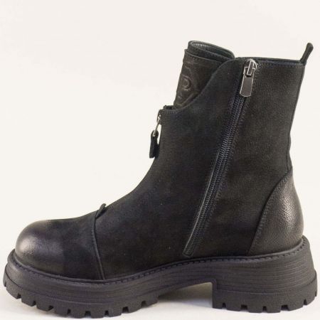 Модерни дамски боти от естествен набук в черен цвят с цип me41nch