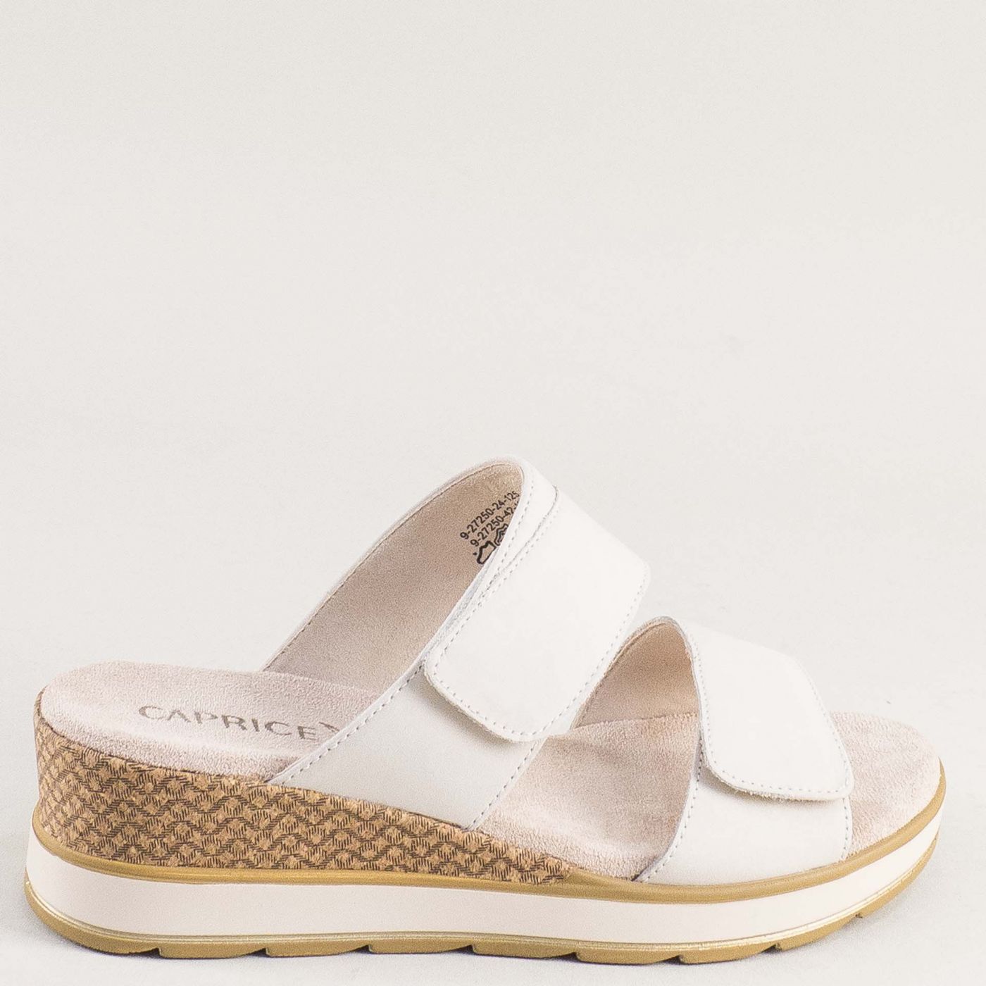 Дамски равни комфортни чехли CAPRICE с велкро закопчаване в бяло 927250mb
