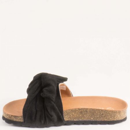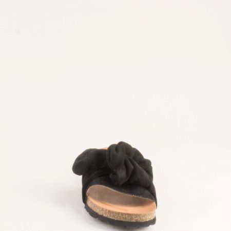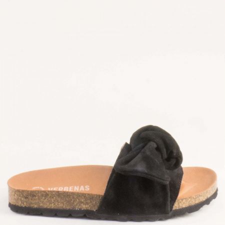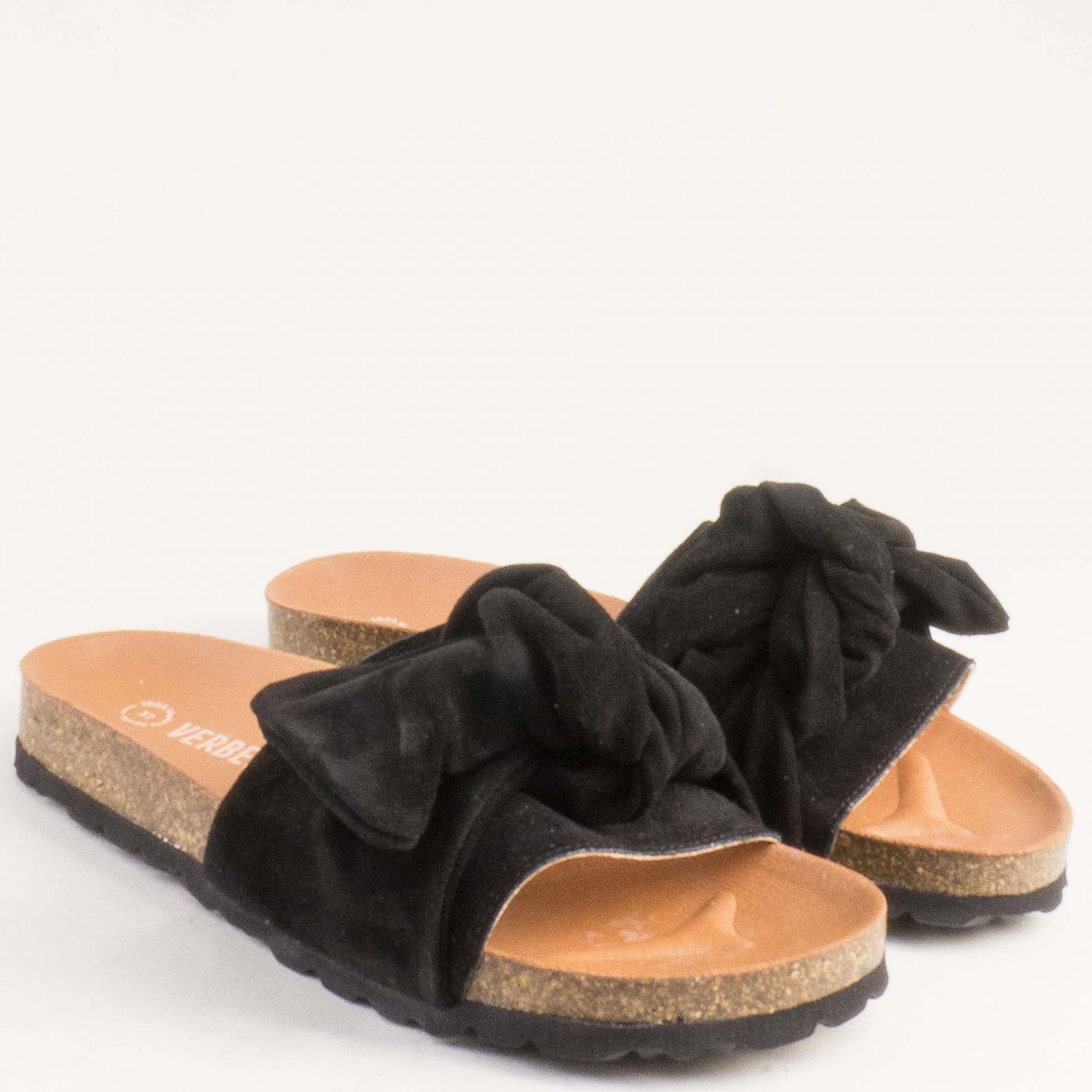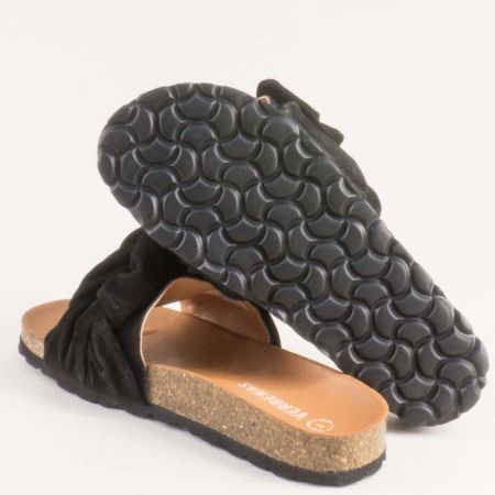 VERBENAS дамски чехли на равно ходилов черен набук с атрактивна визия roxynch