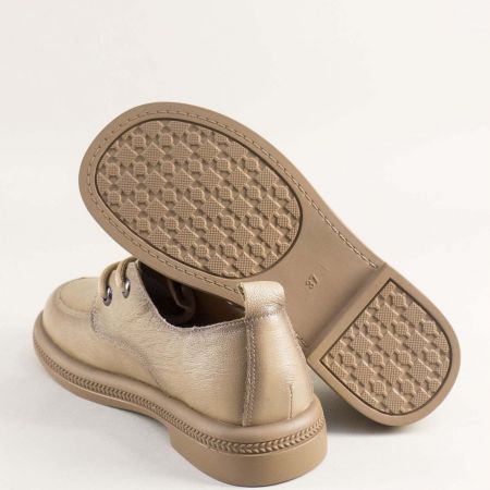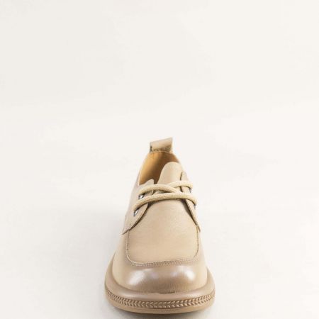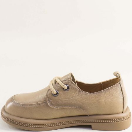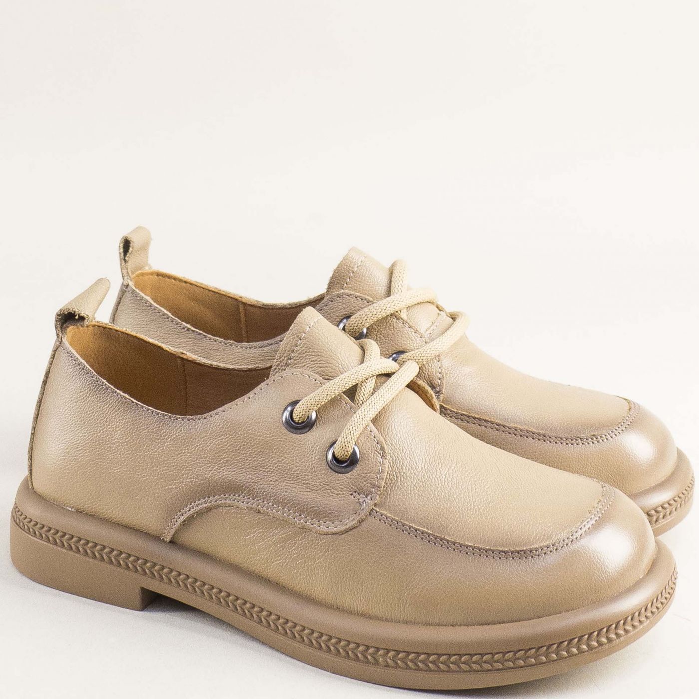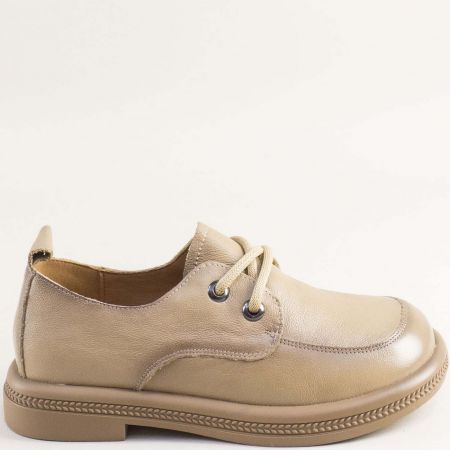 Бежови дамски лоуфъри с връзки от естествена кожа 043265bj