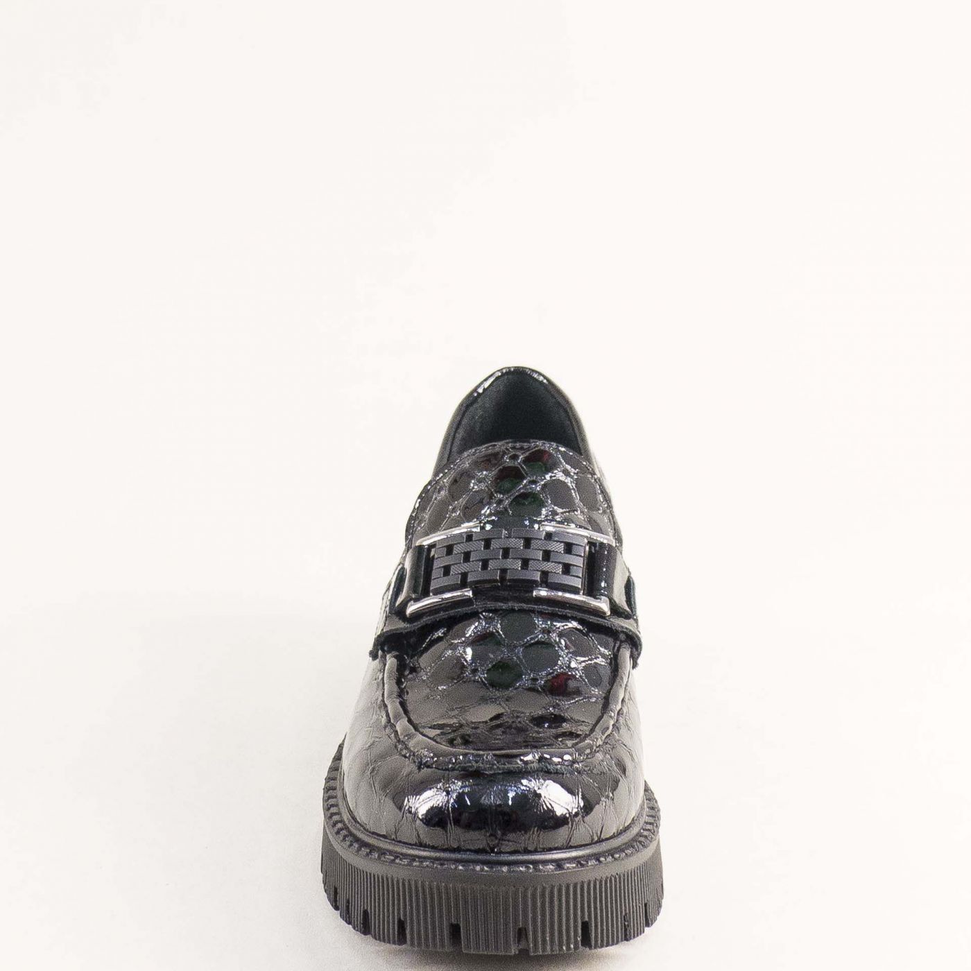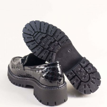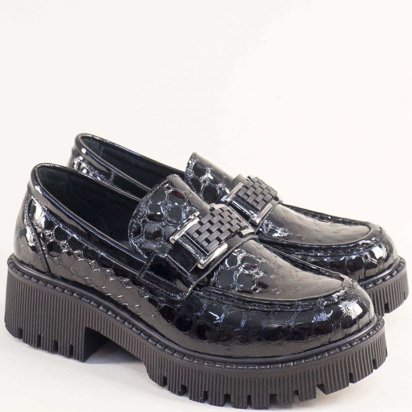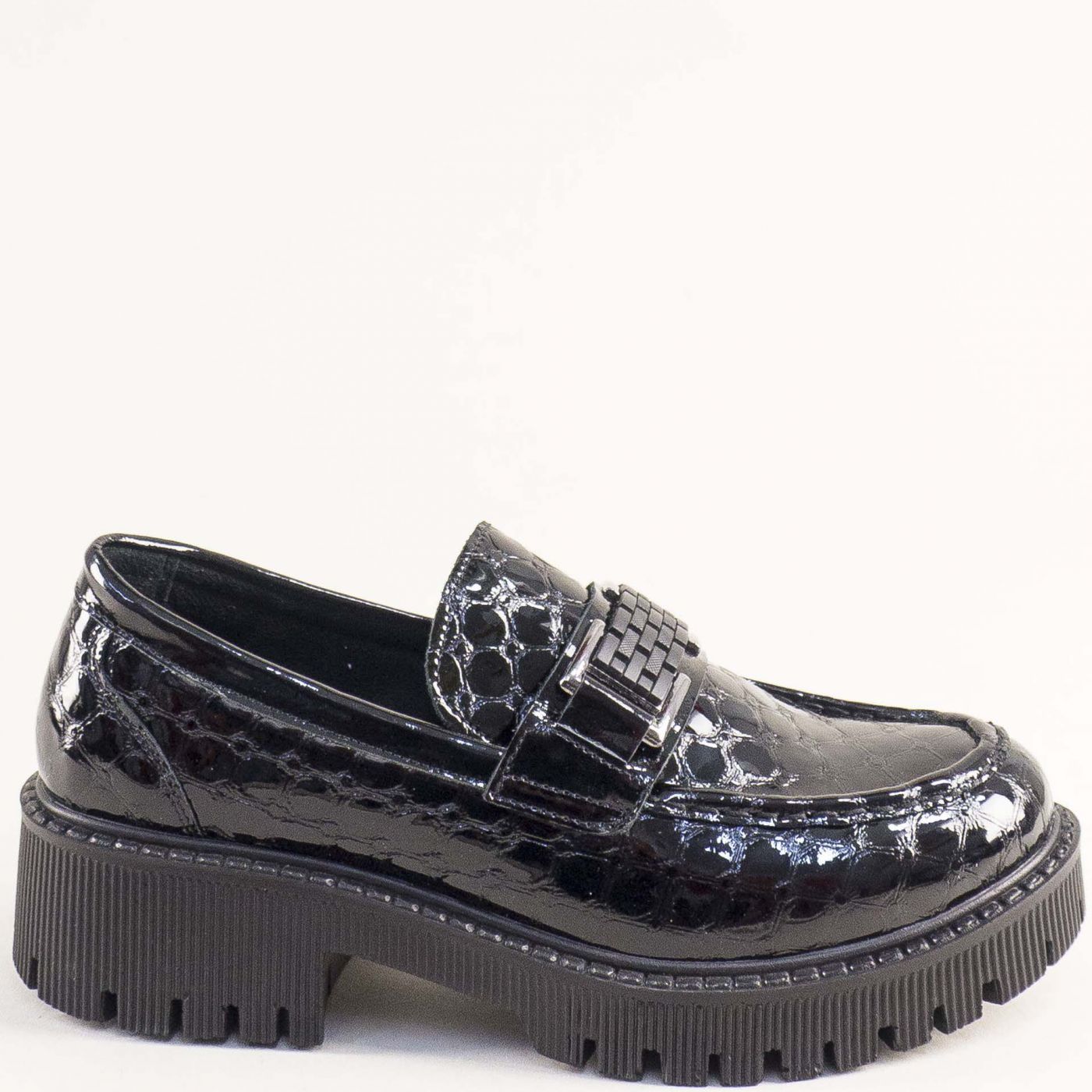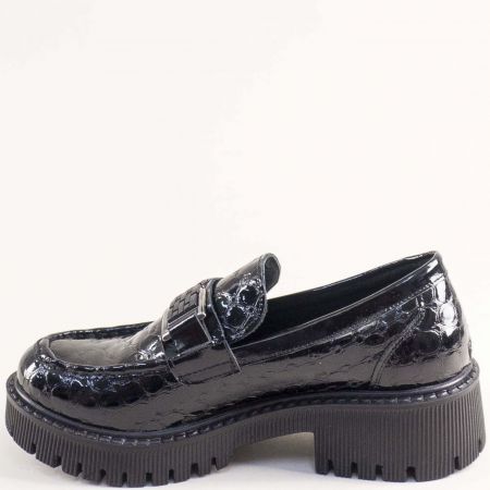 Дамски лоуфъри от естествен кроко лак с метален детайл в черно 2504krlch1