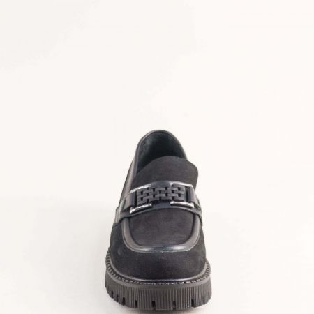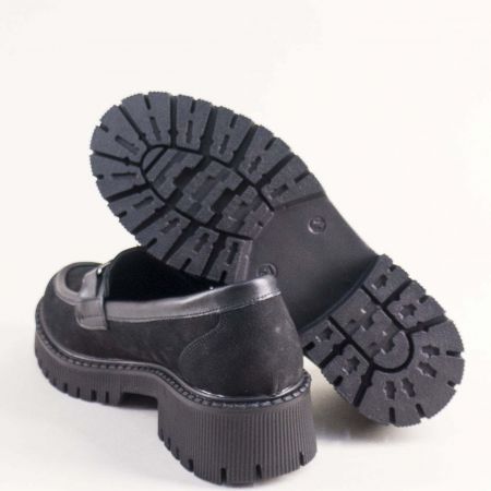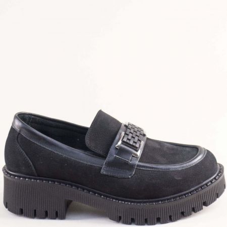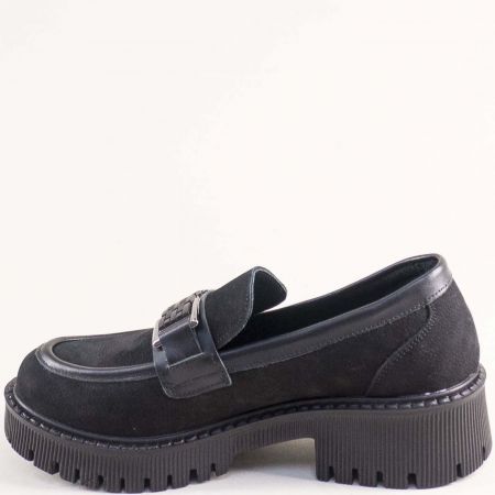 Естествен набук дамски лоуфъри със закачлив аксесоар в черен цвят 2504nch