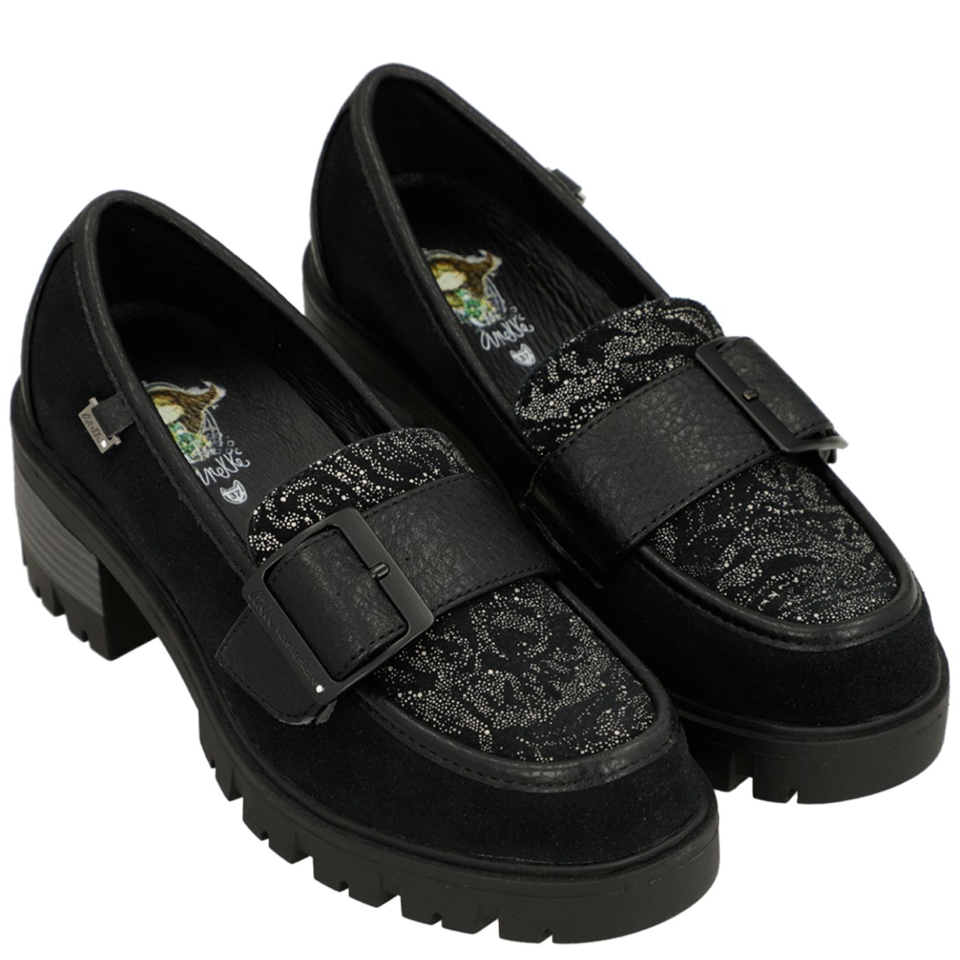 Класически дамски лоуфъри ANEKKE в черен цвт със сребрист блясък 41383-x95
