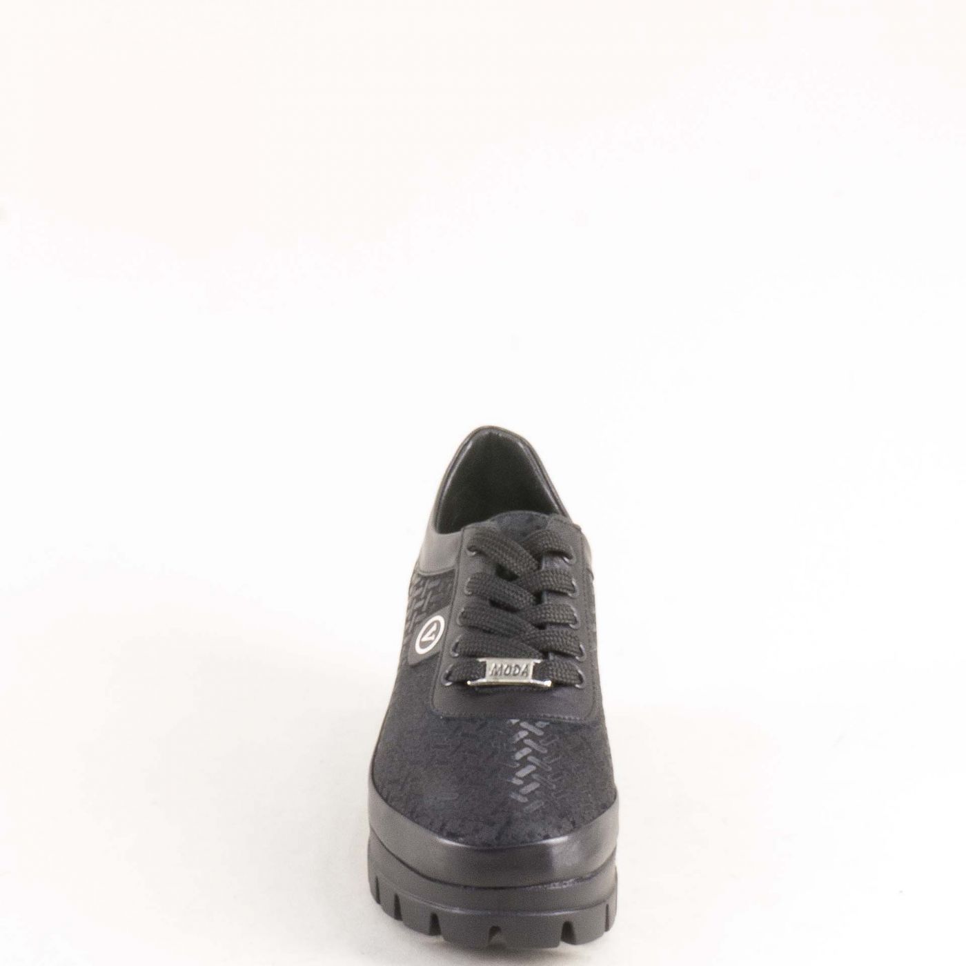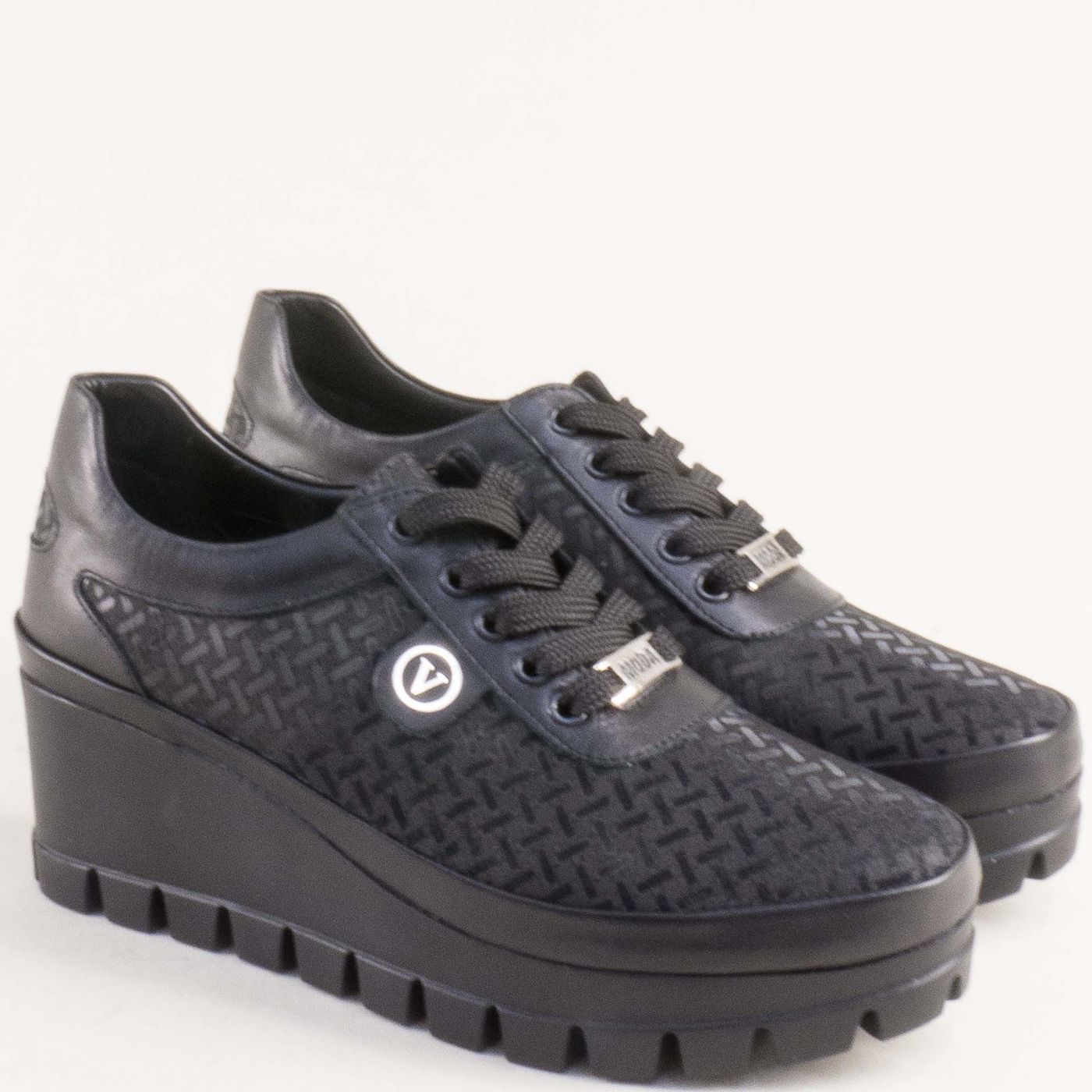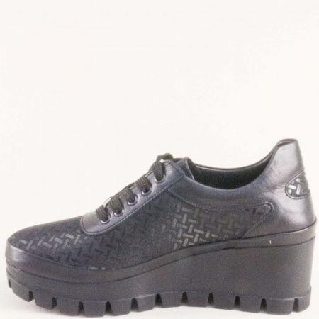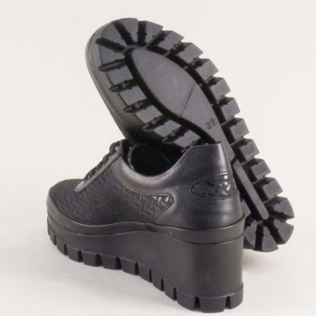 Кожени дамски обувки в черен цвят със сатенен ефект на платформа aj525sch1