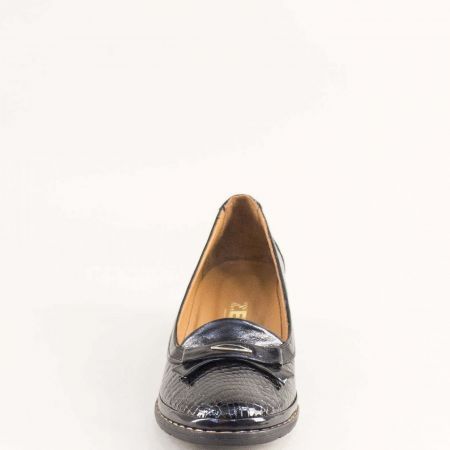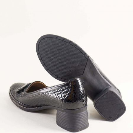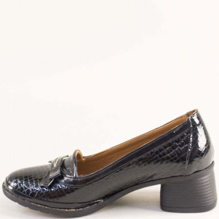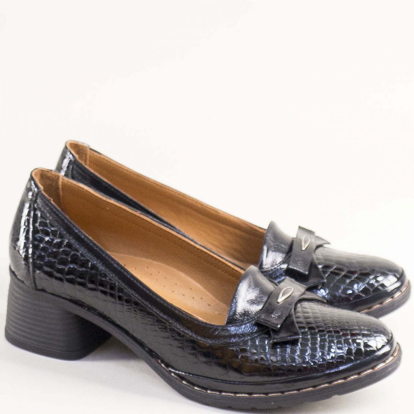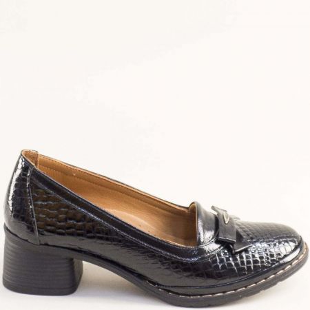 Стилни дамски обувки в черен кроко лак с панделка на среден ток 7471krlch