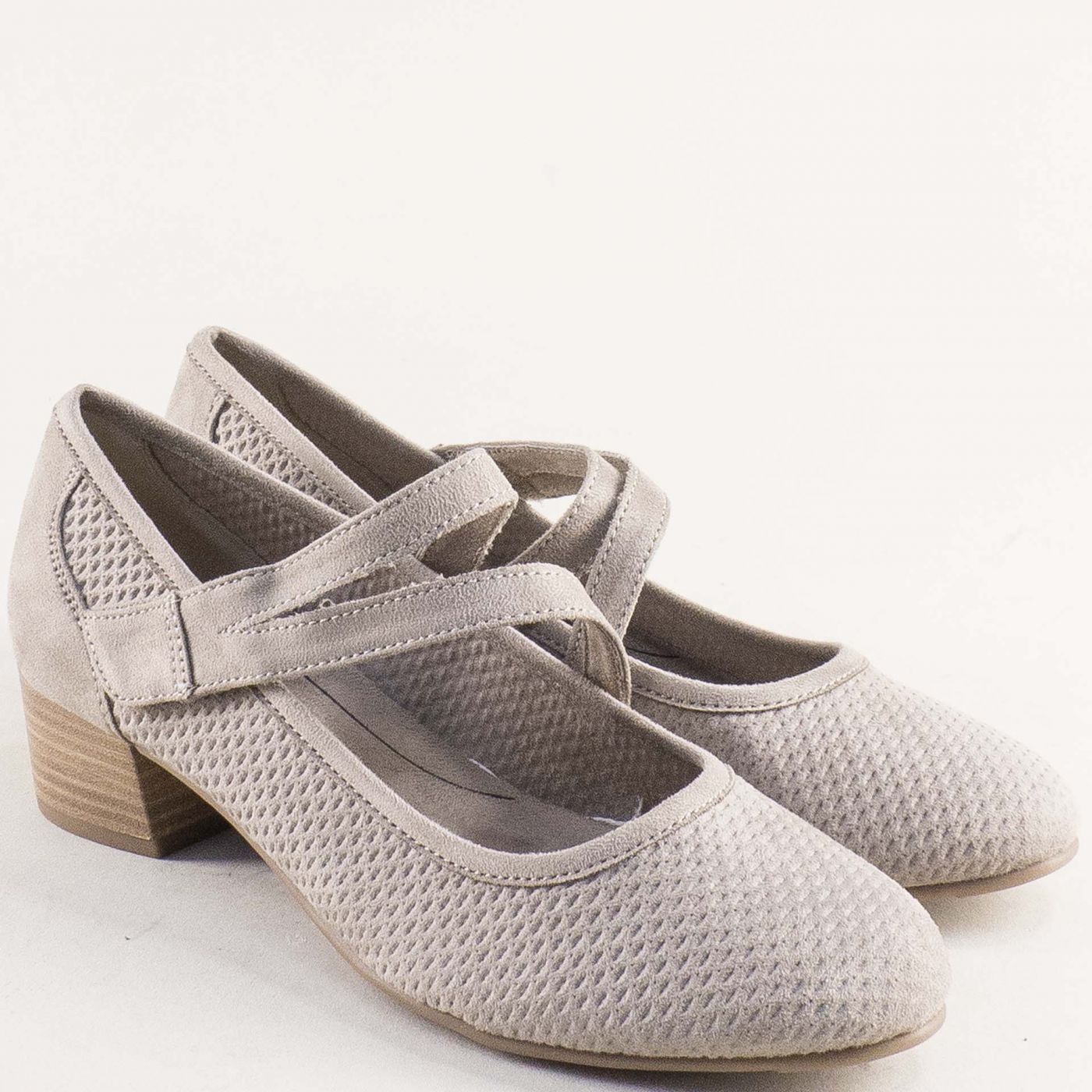 JANA дамски обувки на среден ток с велкро закопчаване в бежов цвят 8-24363-231