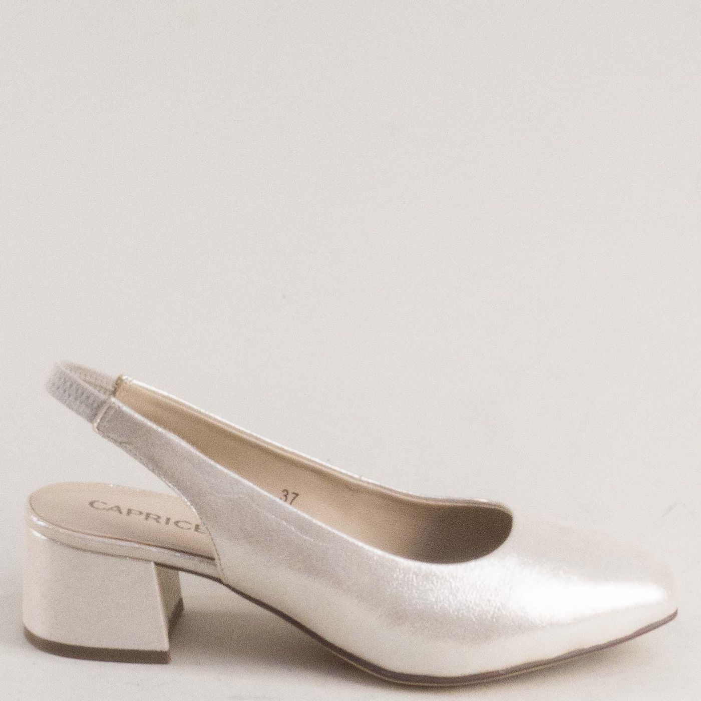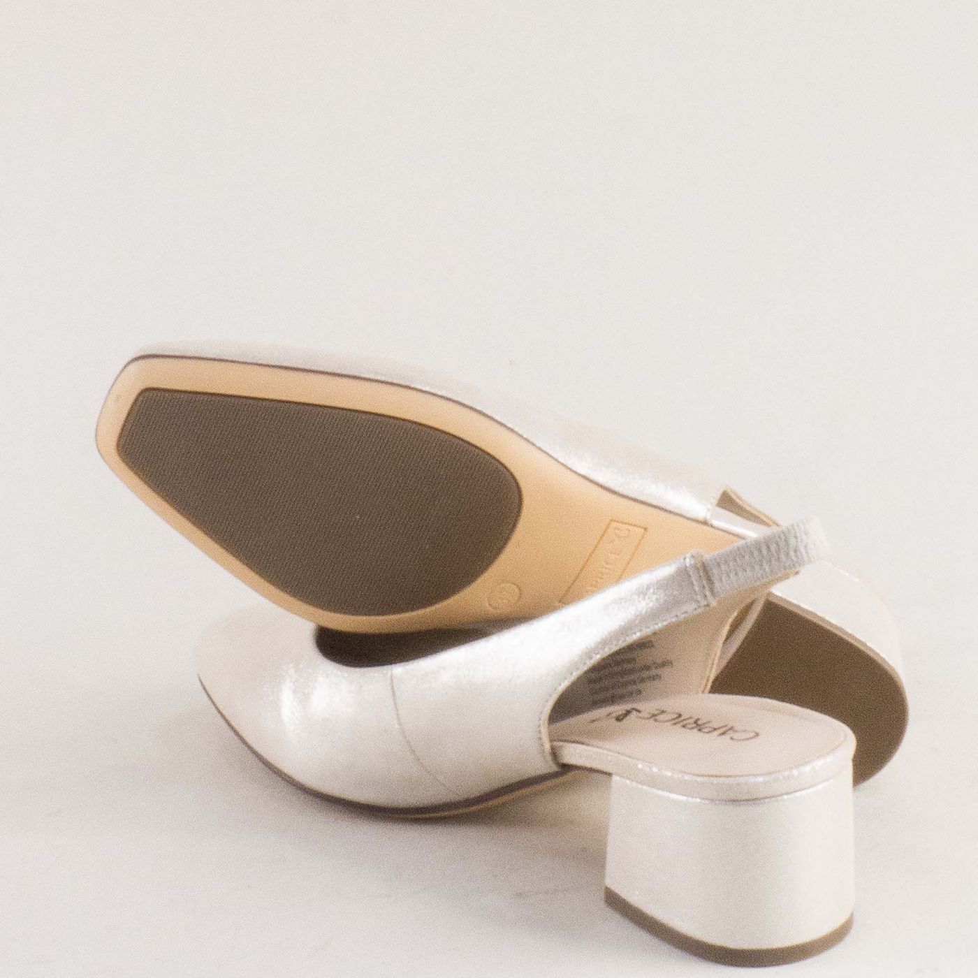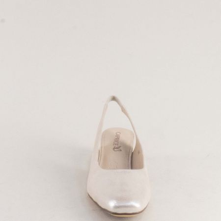 Стилни дамски обувки на среден ток с отворена пета и перлен блясък 9-29500-341