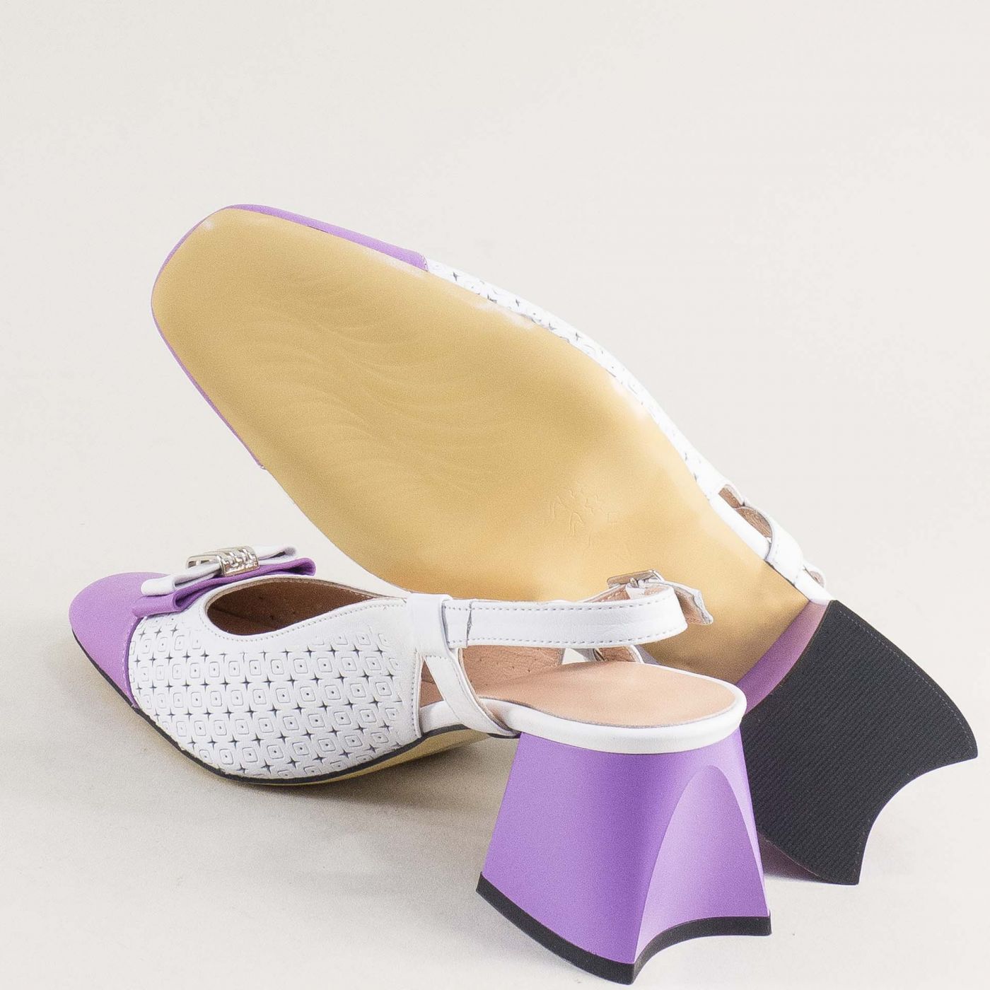 Модерни дамски обувки в бяло и лилаво със закачлив аксесоар aj234bl