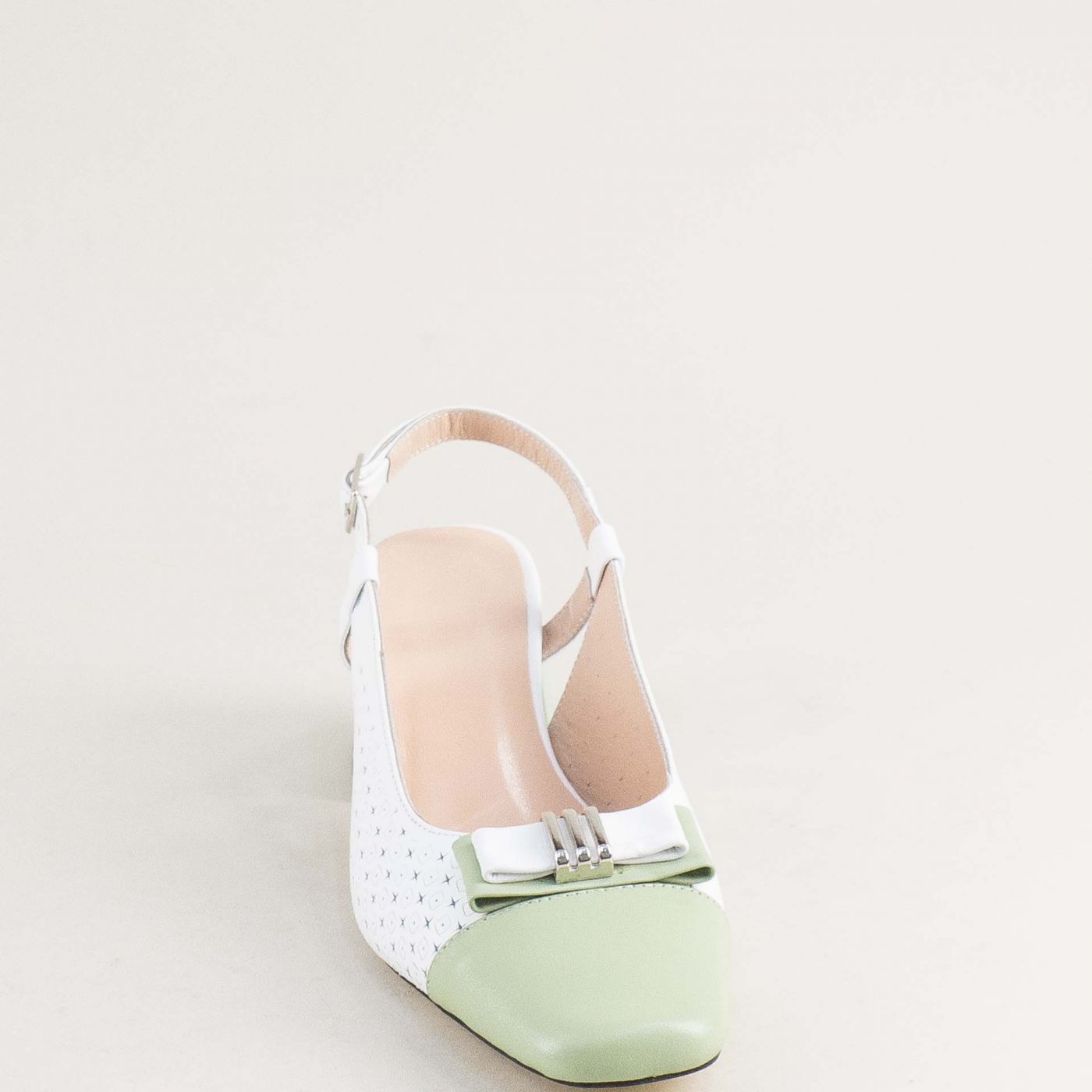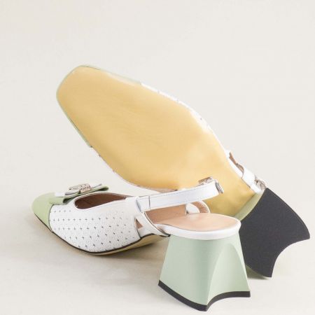 Елегантни дамски обувки в бяло и зелено от естествена кожа aj234bz