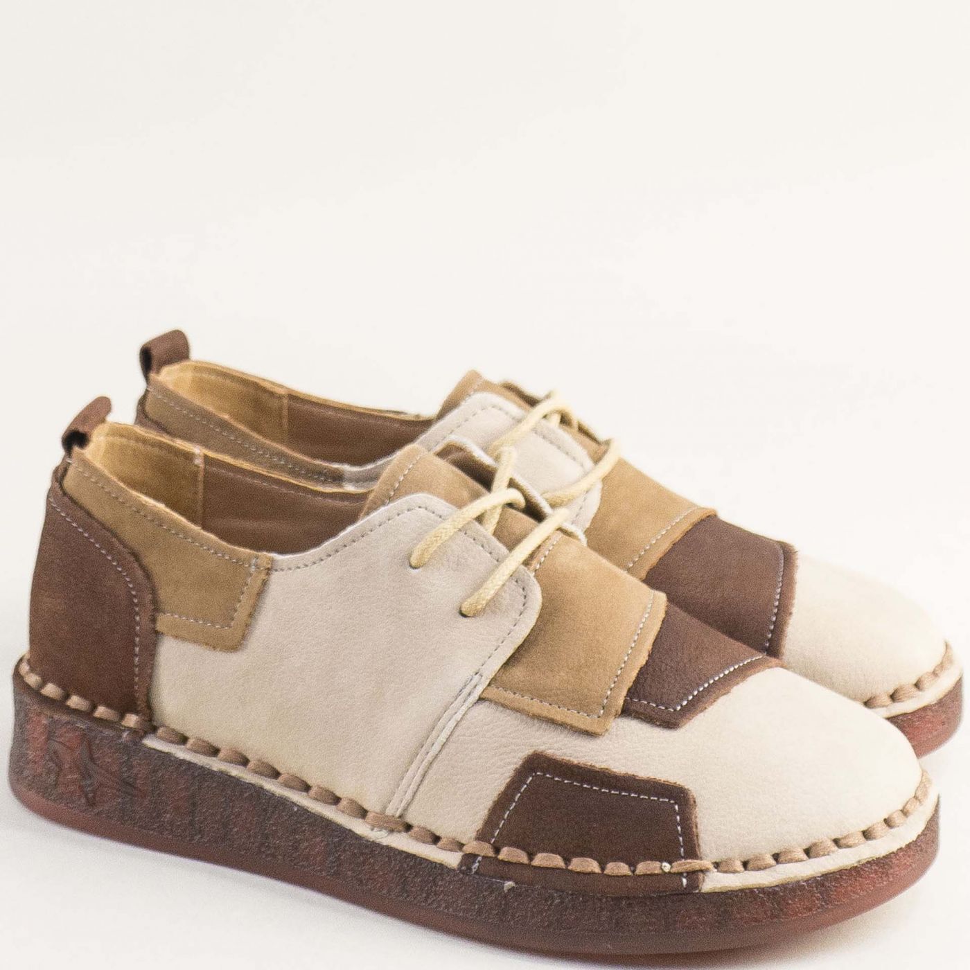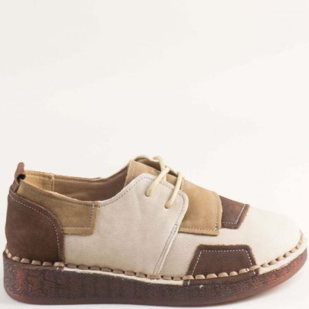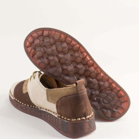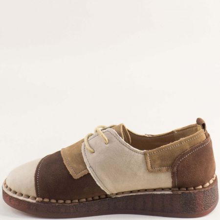 Естествен набук дамски обувки в бежово и кафяво на комфортно ходило 043232nbjps