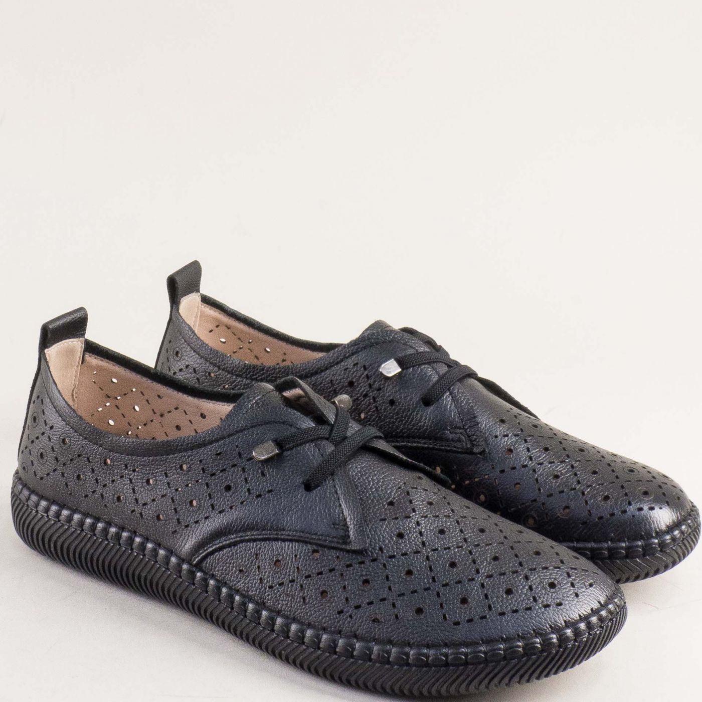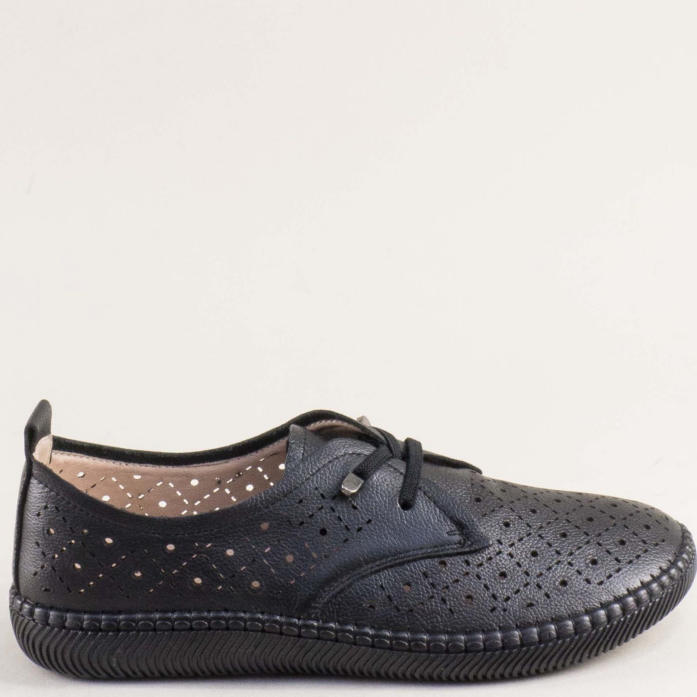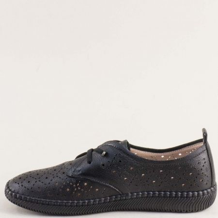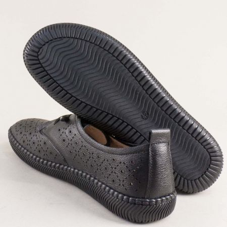 Перфорирани дамски обувки от естествена кожа в черен цвят 043293ch