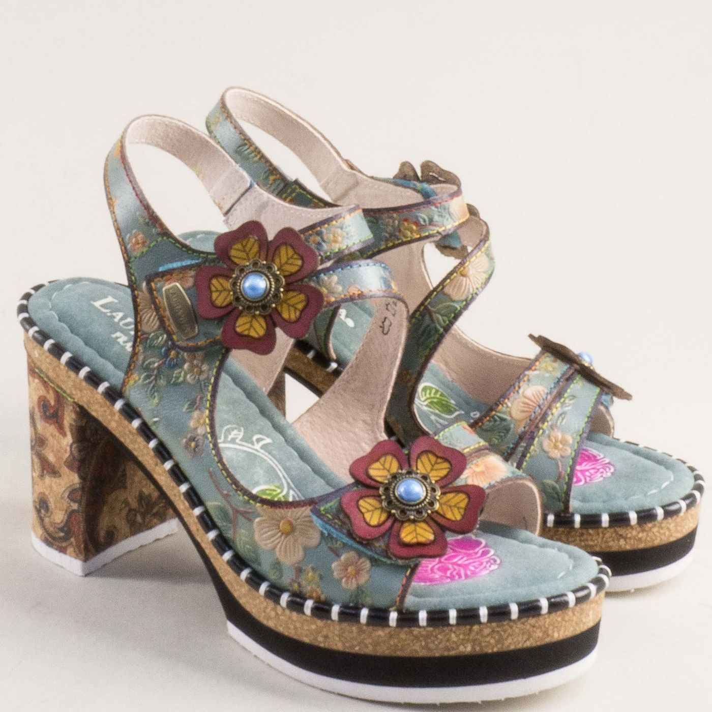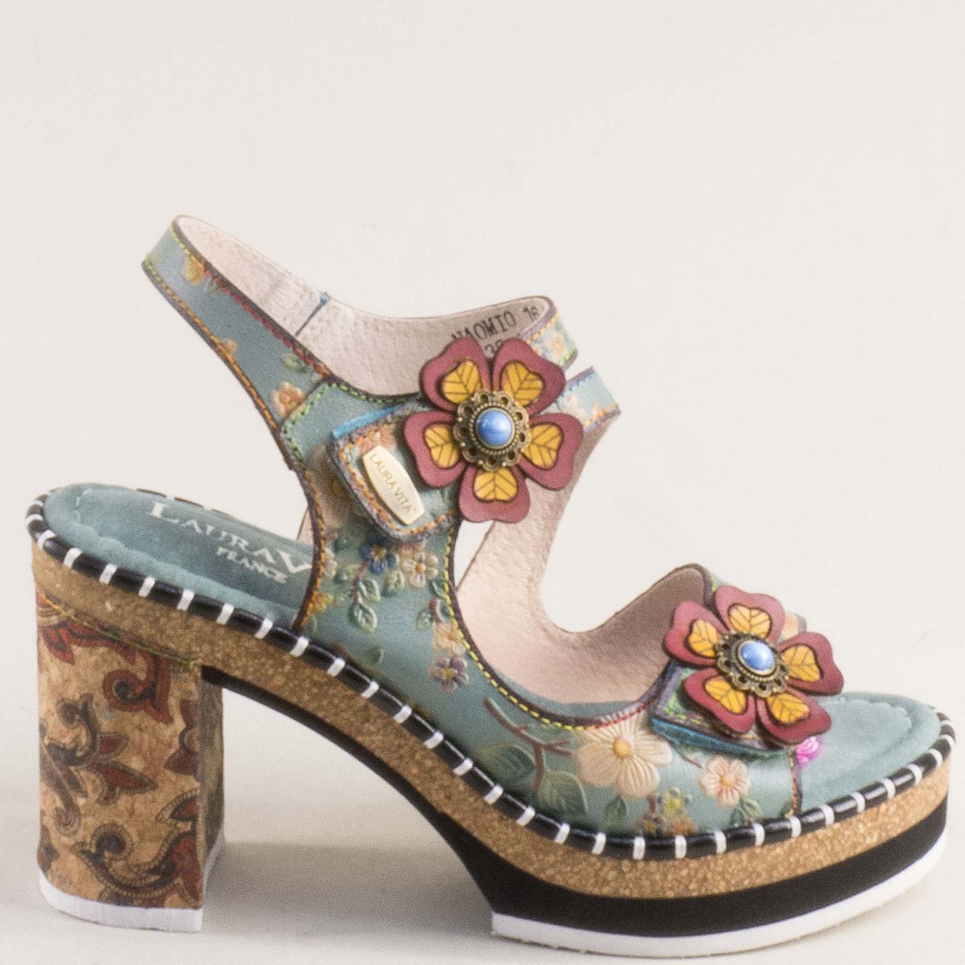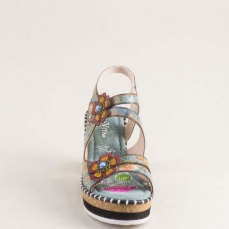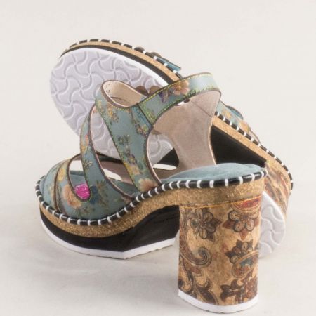 Зелени дамски сандали LAURA VITA на висок ток с ефектно цвете 0007790zps