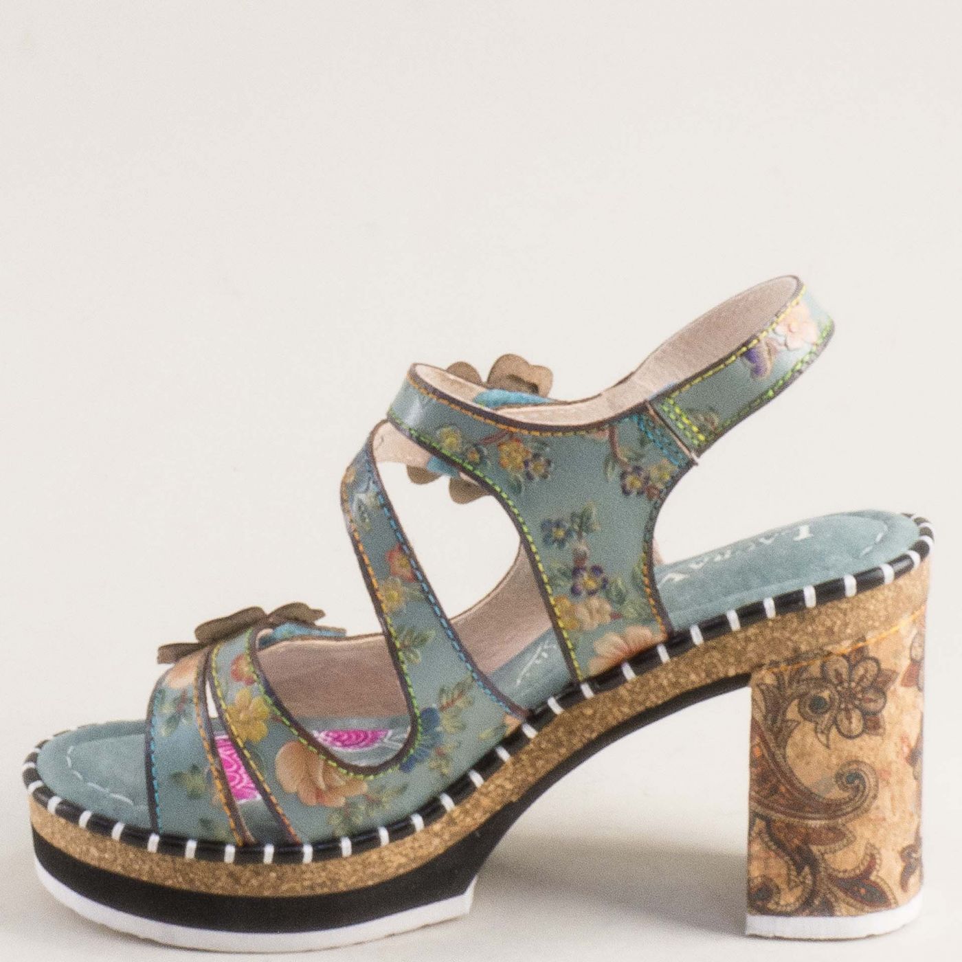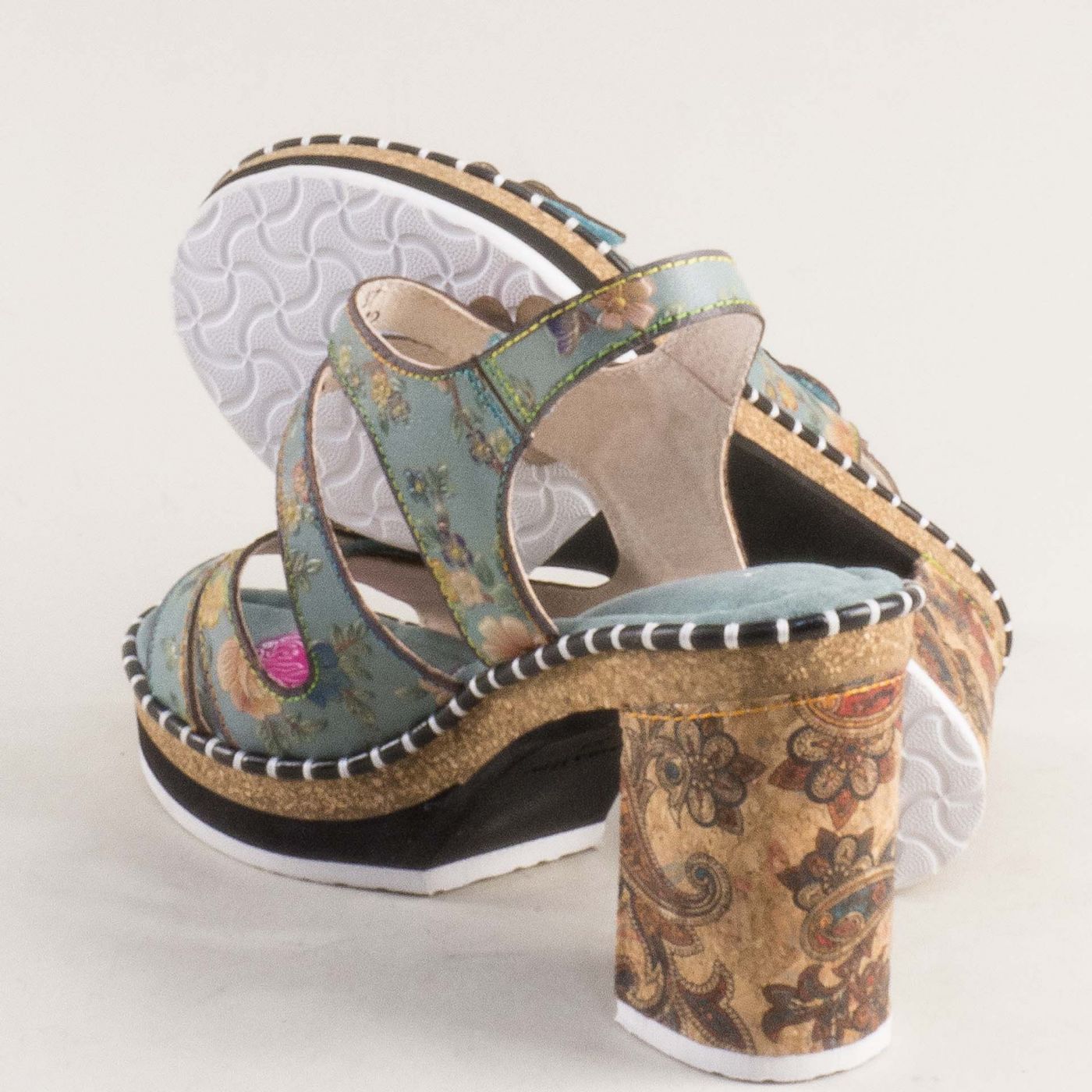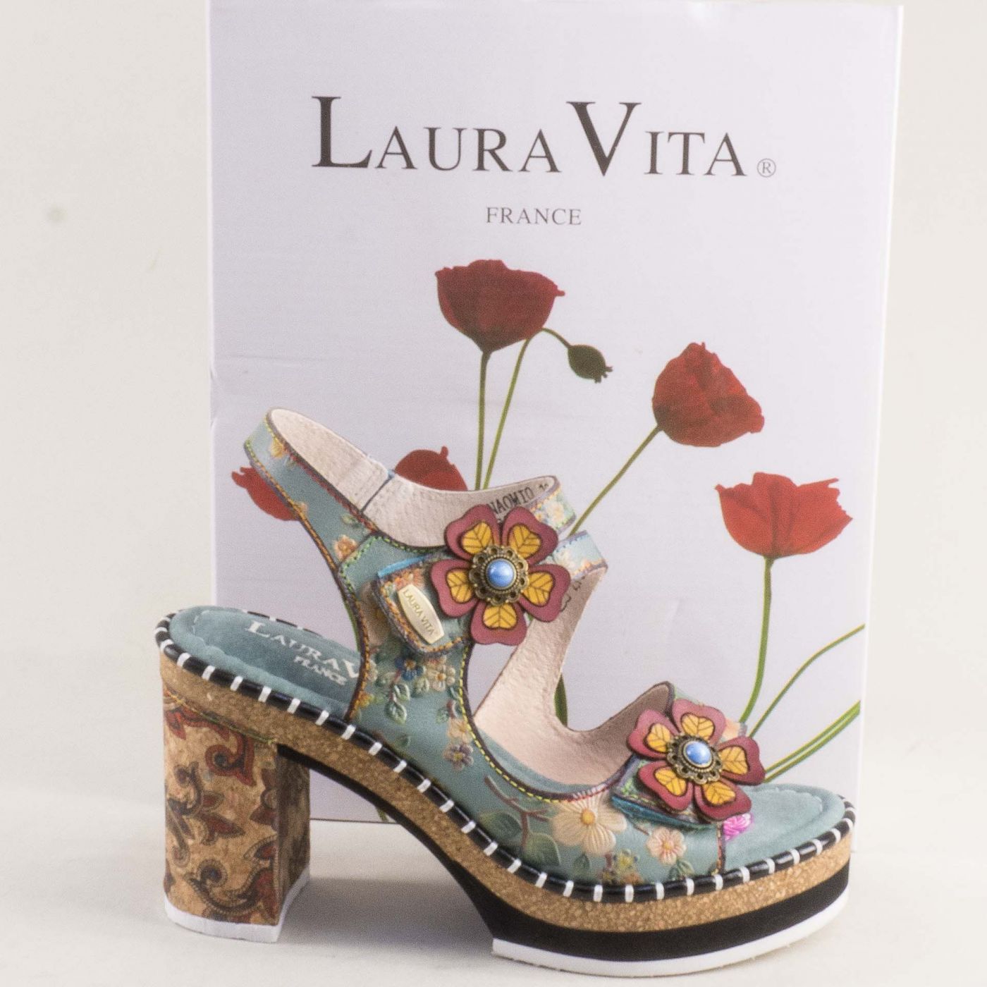 Зелени дамски сандали LAURA VITA на висок ток с ефектно цвете 0007790zps