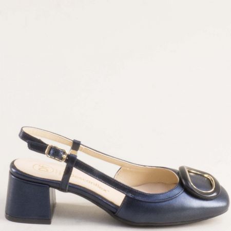 Фешън дамски сандали с атрактивен аксесоар в модерен син цвят 28126ts