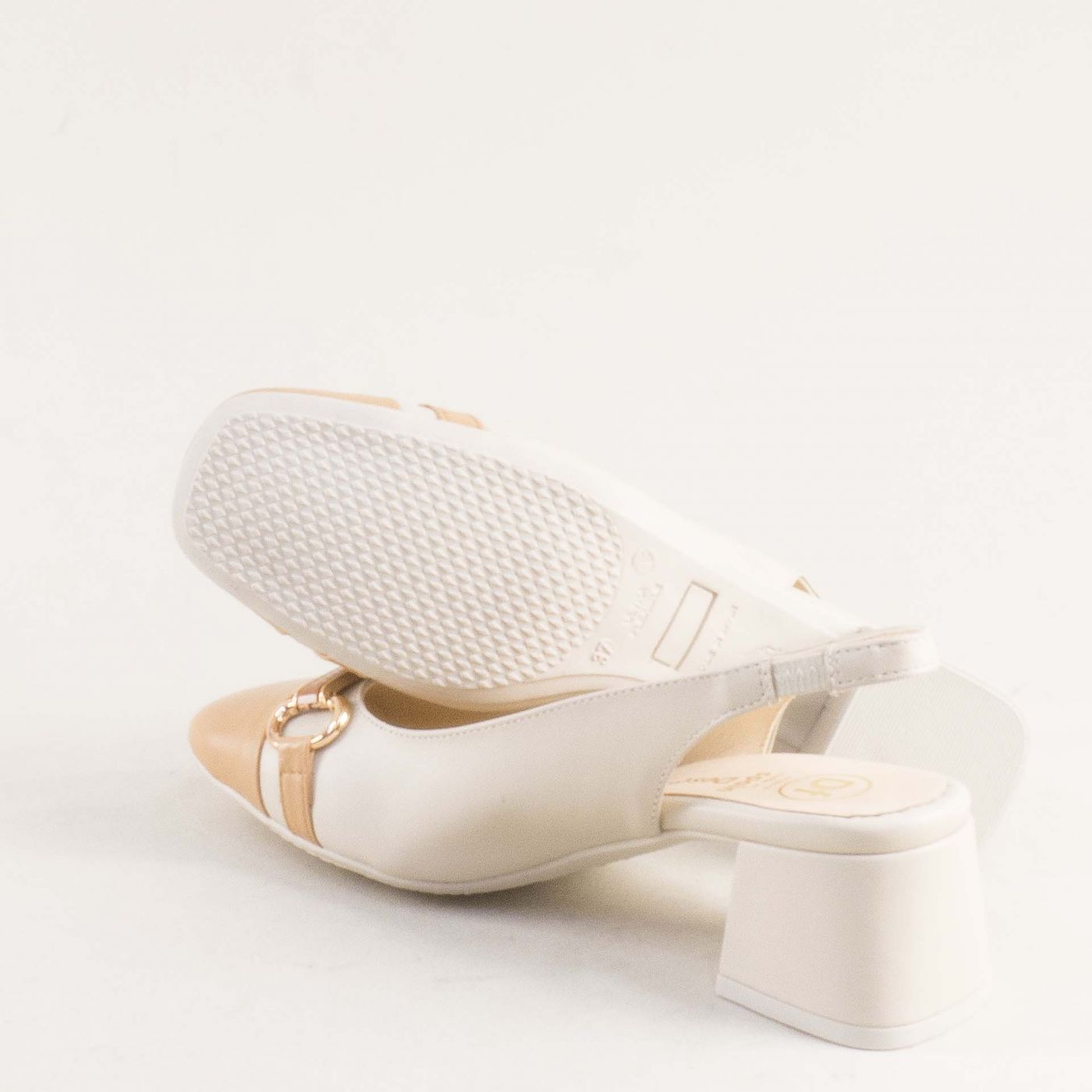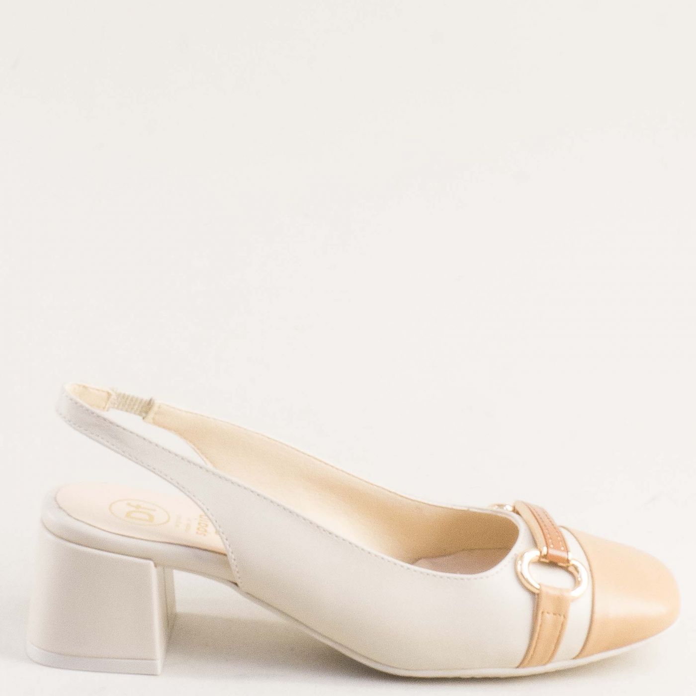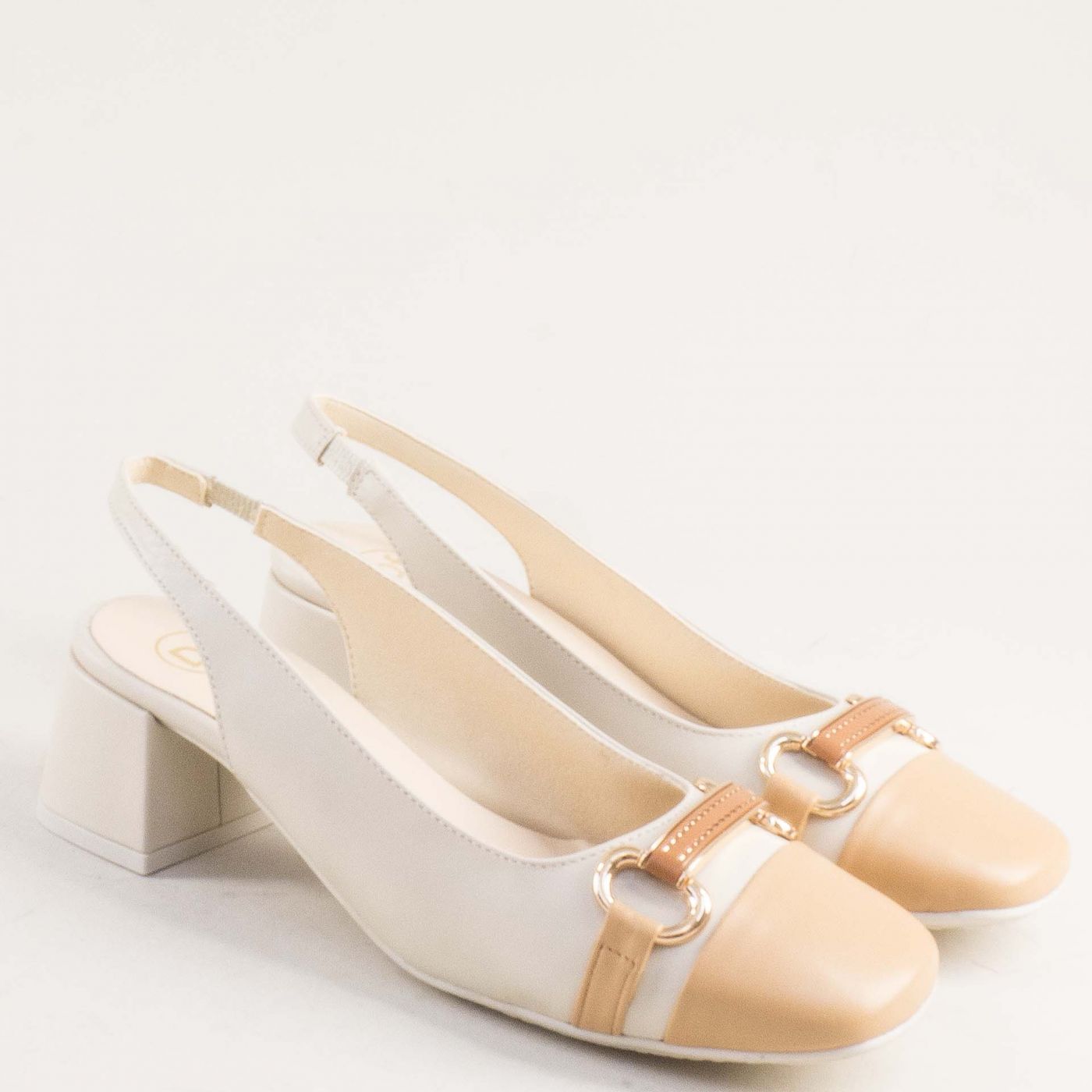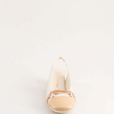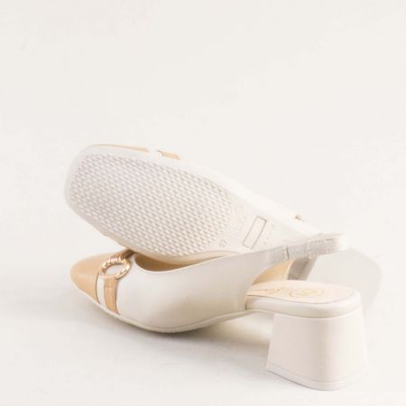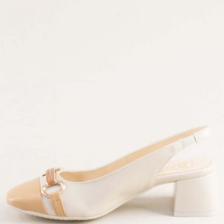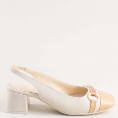 стилни дамски сандали в бежов цвят от естествена кожа на среден ток 28127bj