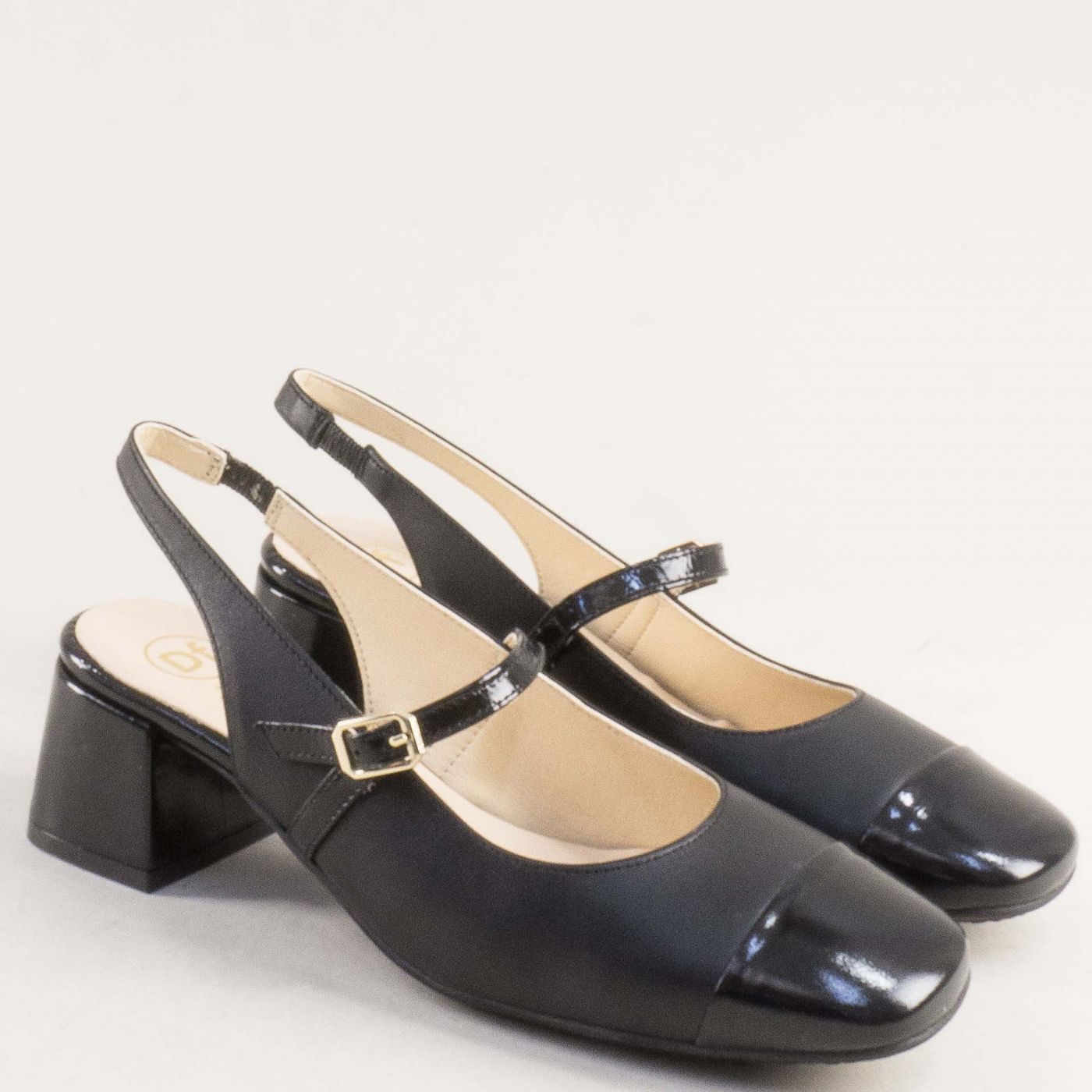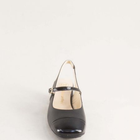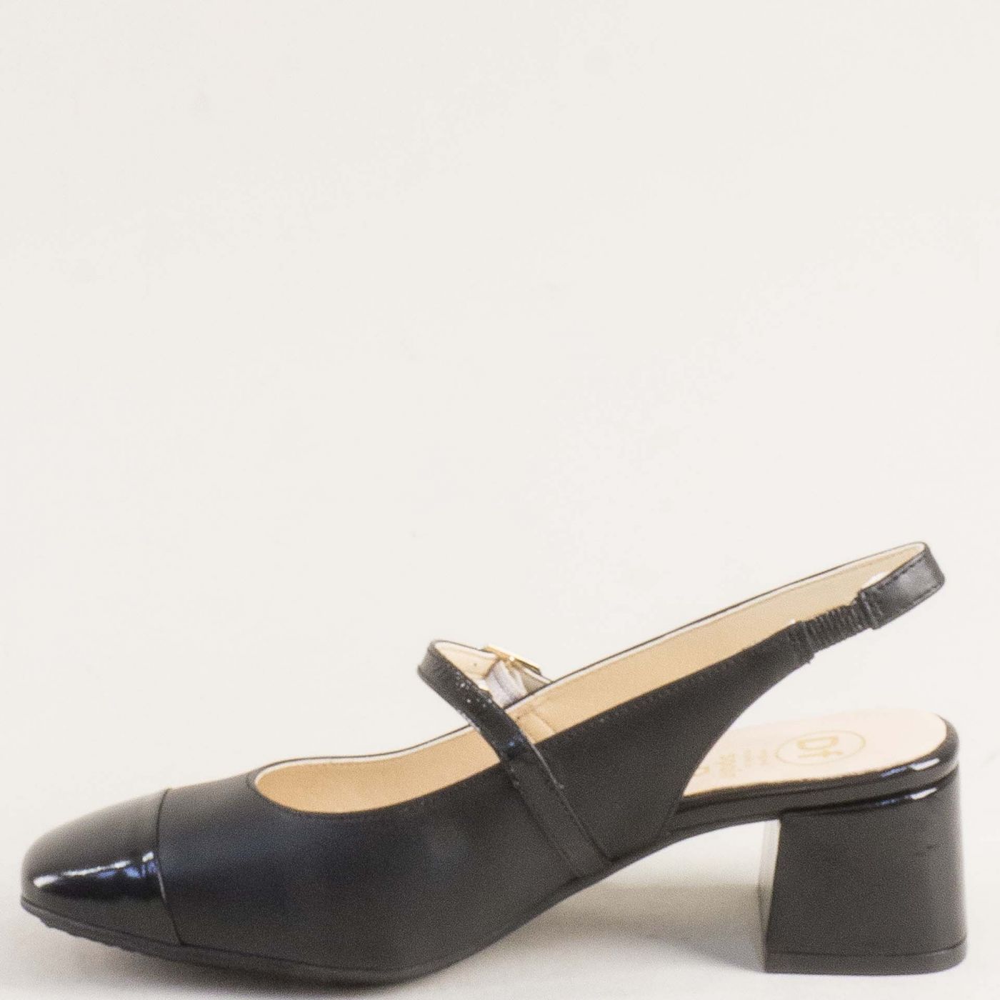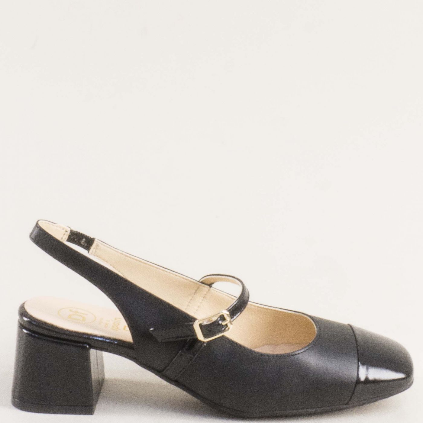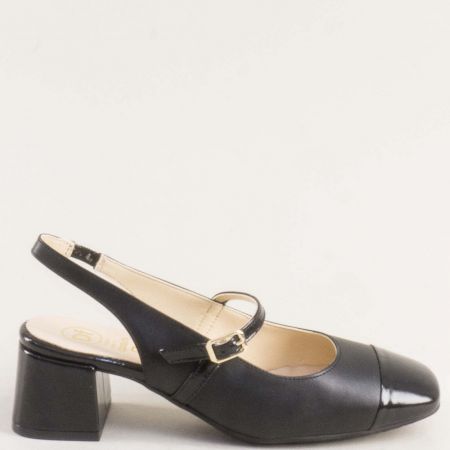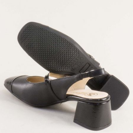 Стилни дамски сандали в черна кожа с лачени детайли на среден ток 28128chlch