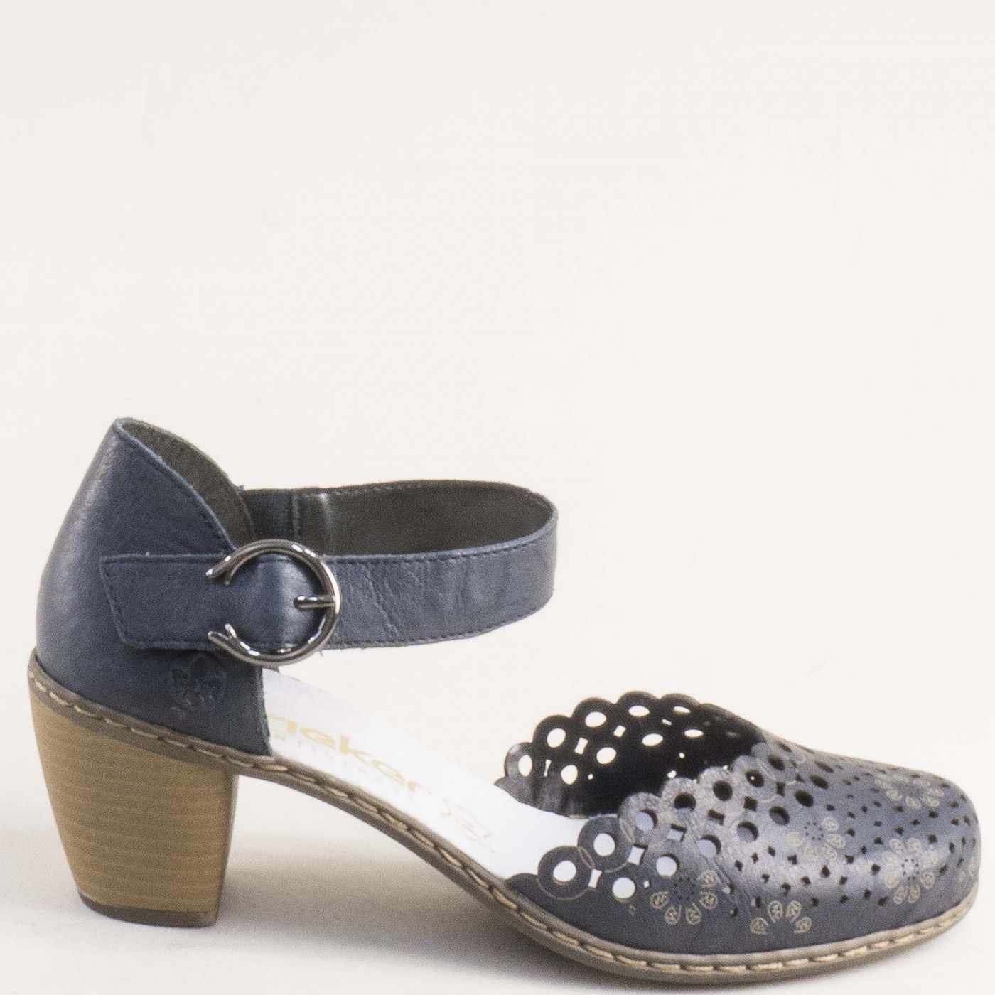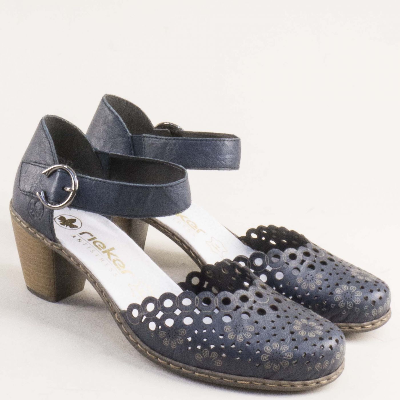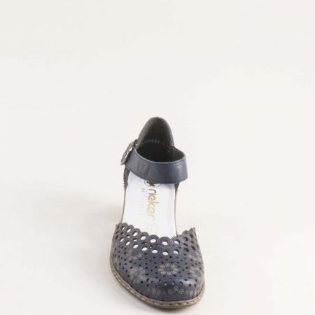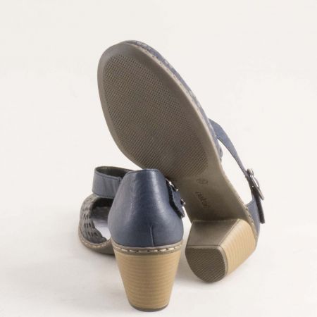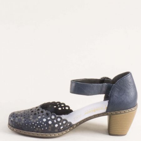 Естествена кожа дамски сандали на среден ток RIEKER в син цвят 40902-14