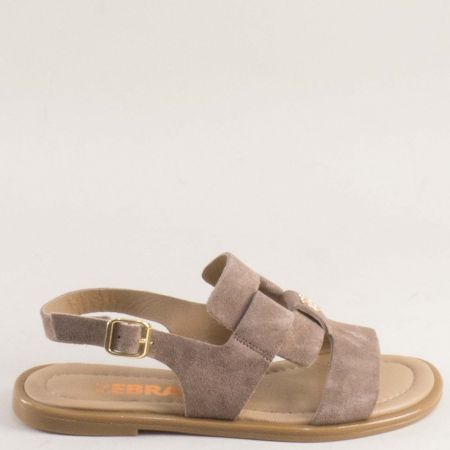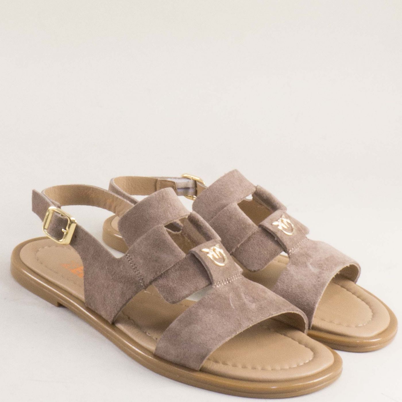 Ежедневни дамски сандали в бежов естествен набук a6292nbj