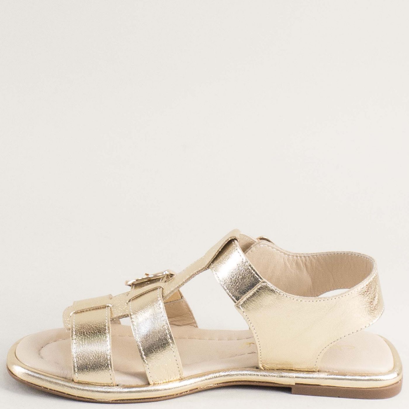 Златни дамски сандали от естествена кожа на равно ходило aj29626zl