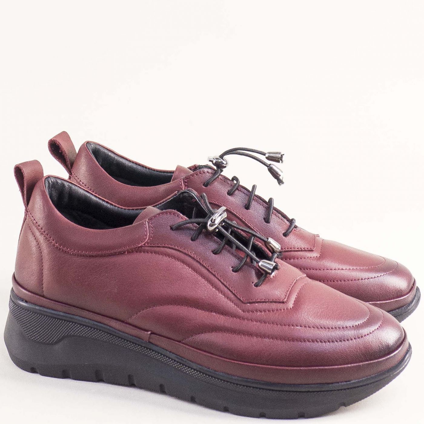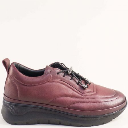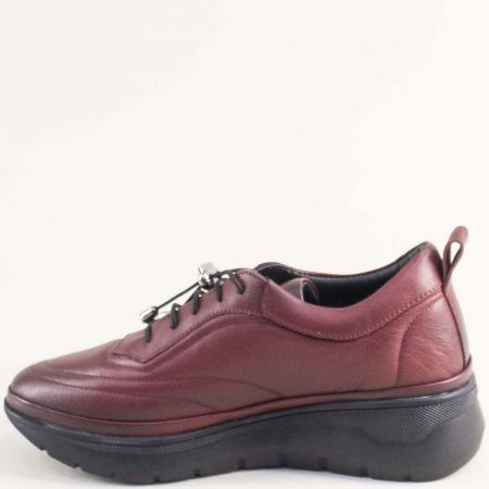 Естествена кожа дамски обувки в бордо с ластични връзки 040925bd