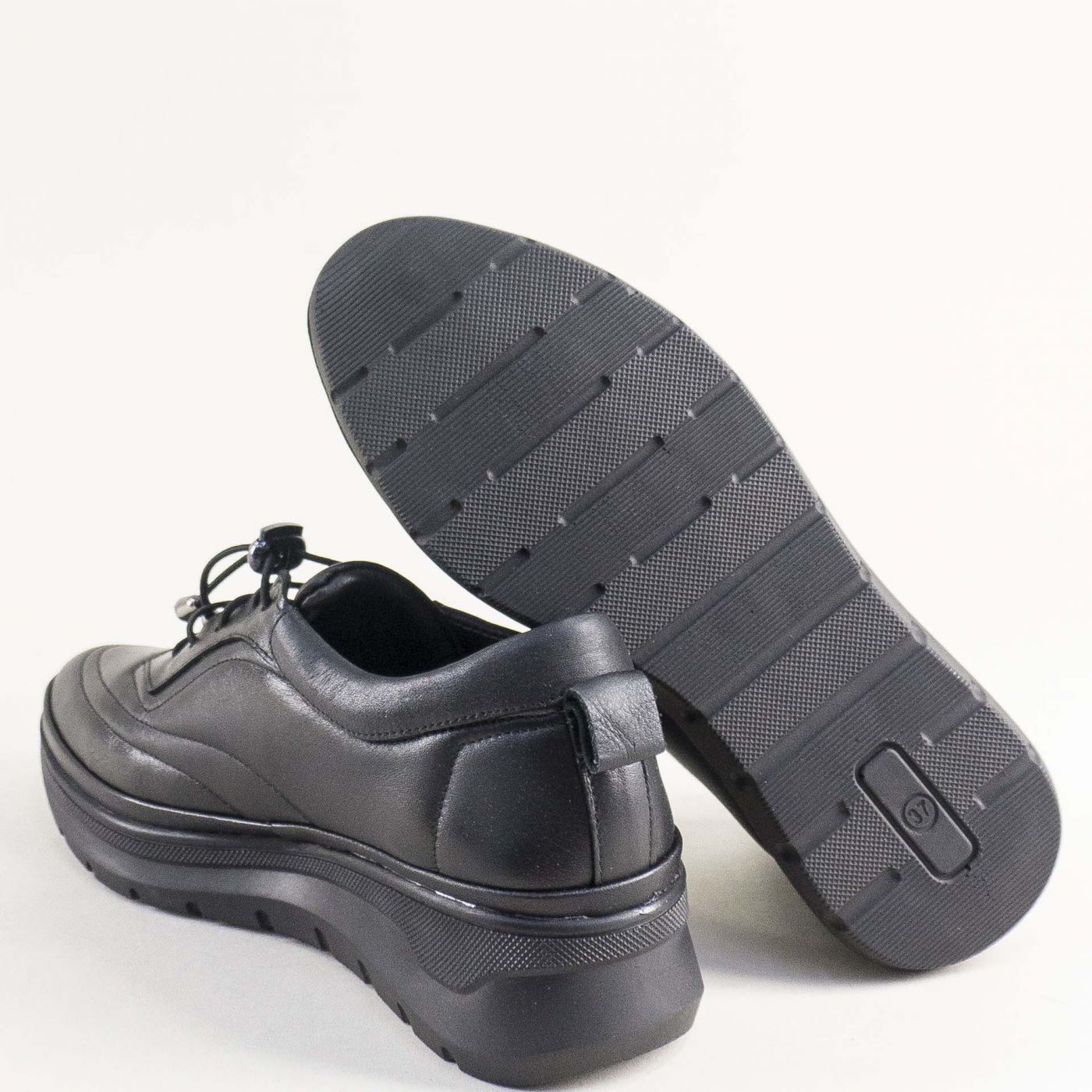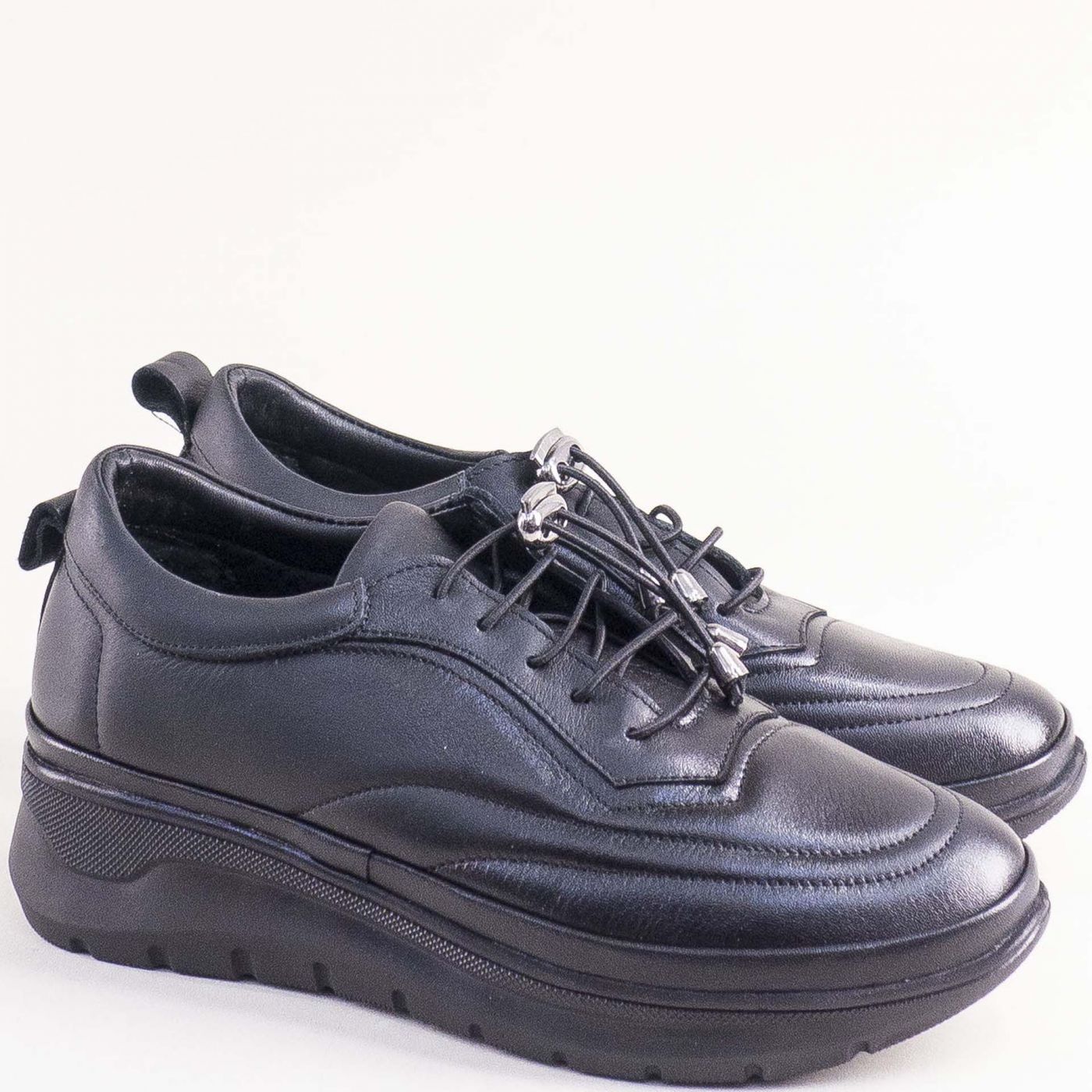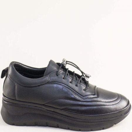 Кожени дамски обувки на платформа в черен цвят 040925ch