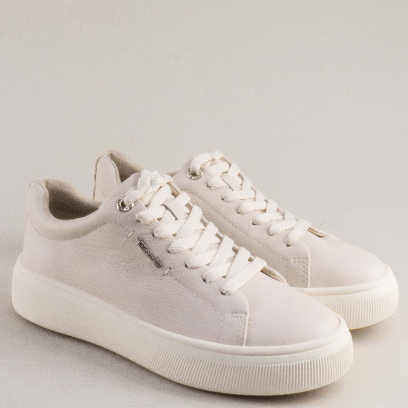 Бежови дамски сникърси TAMARIS от естествена кожа на платформа 1-23736-413