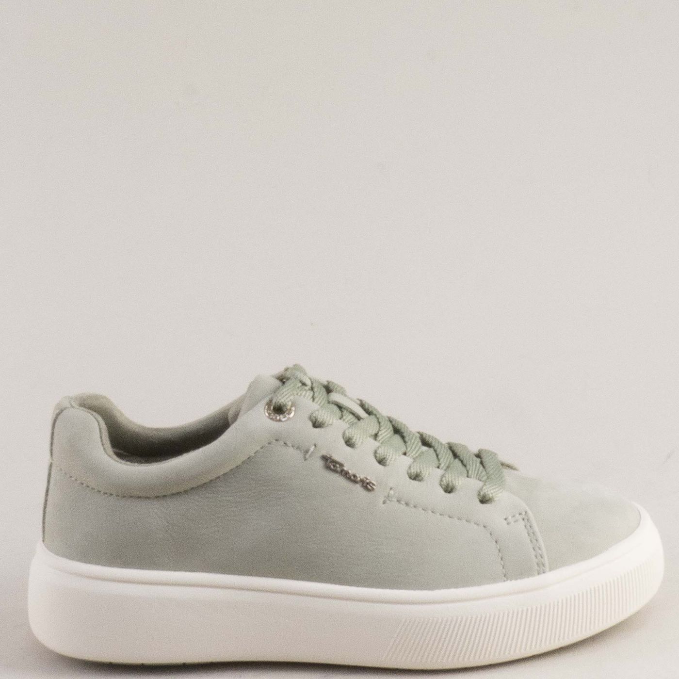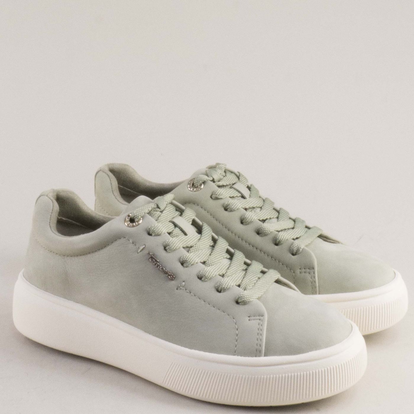 TAMARIS зелени дамски сникърси от естествен набук с връзки 1-23736-782