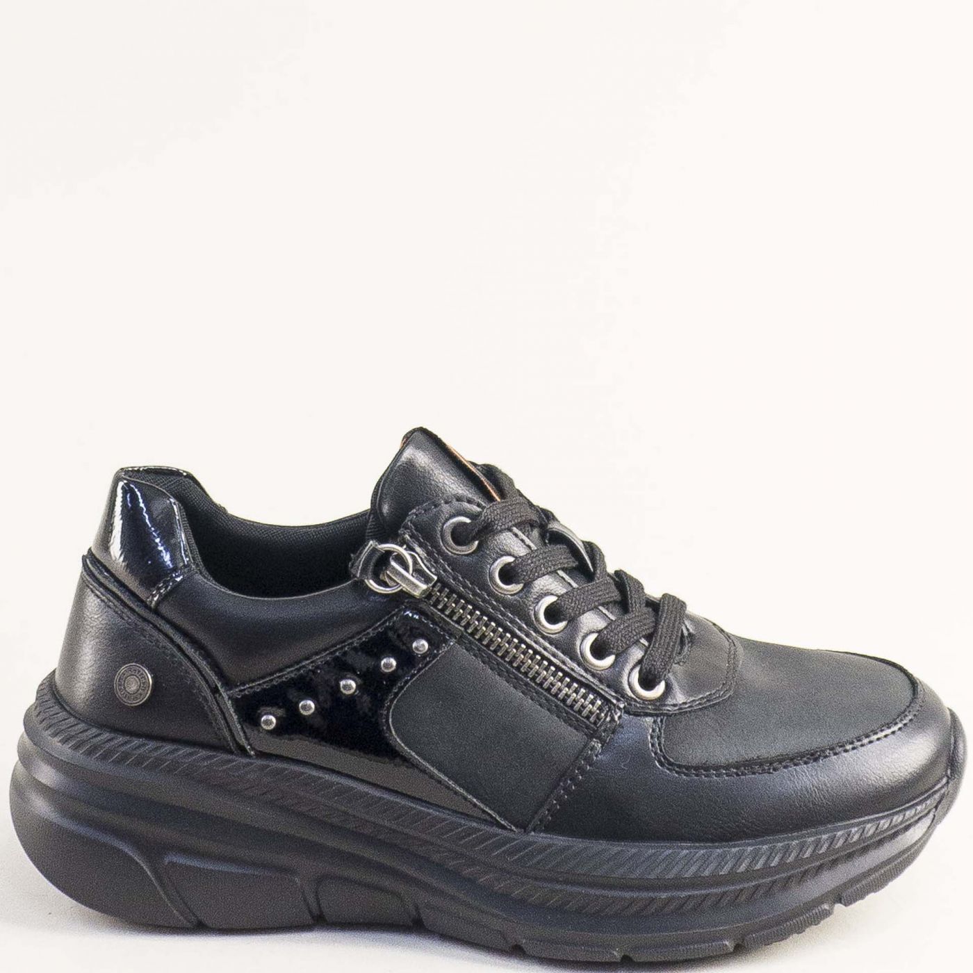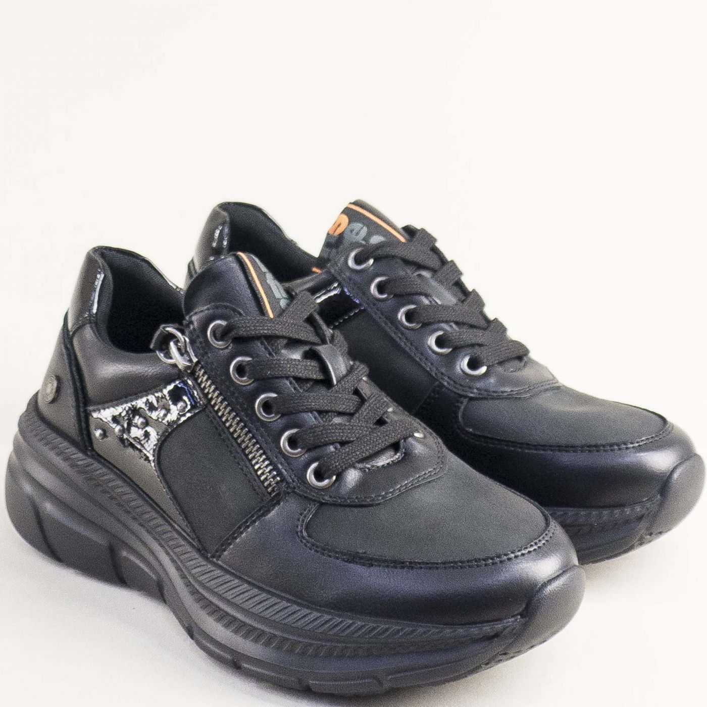 Тренд дамски сникърси в черен цвят със закачлив детайл на платформа 173207ch
