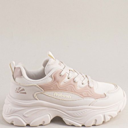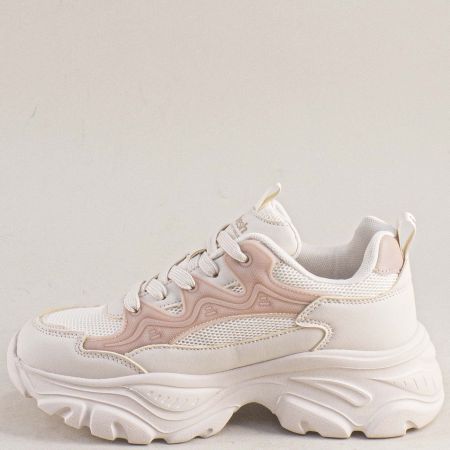 Тренд дамски сникърси в бежов цвят на модерна платформа 175048bj