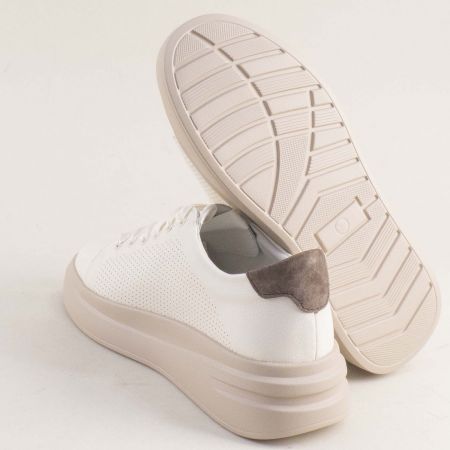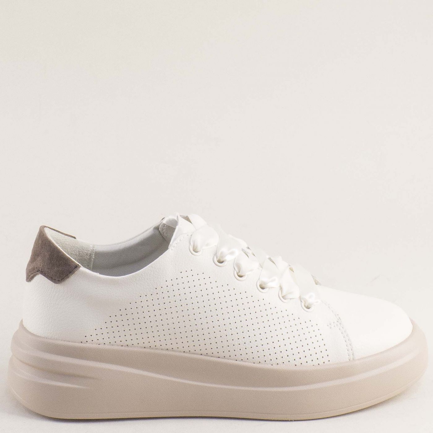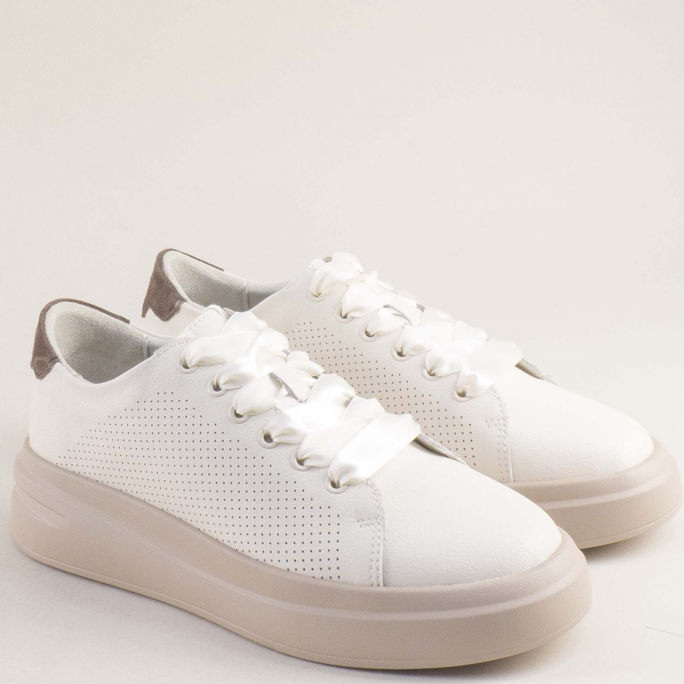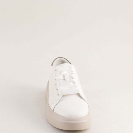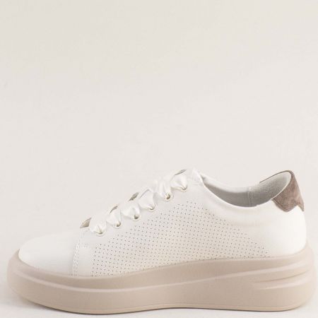 Естествена кожа дамски сникърси в бежов цвят с ефектни връзки 595031bj