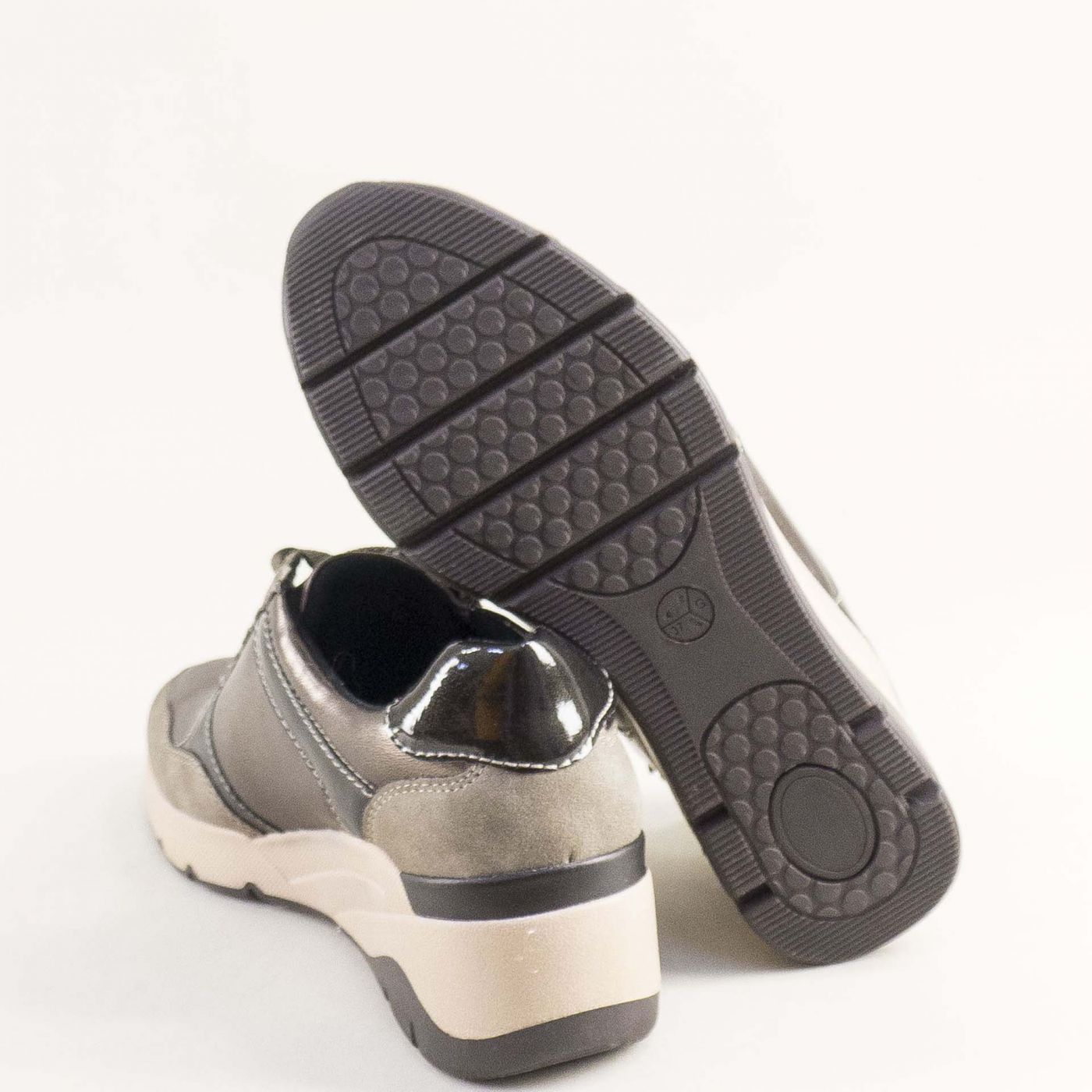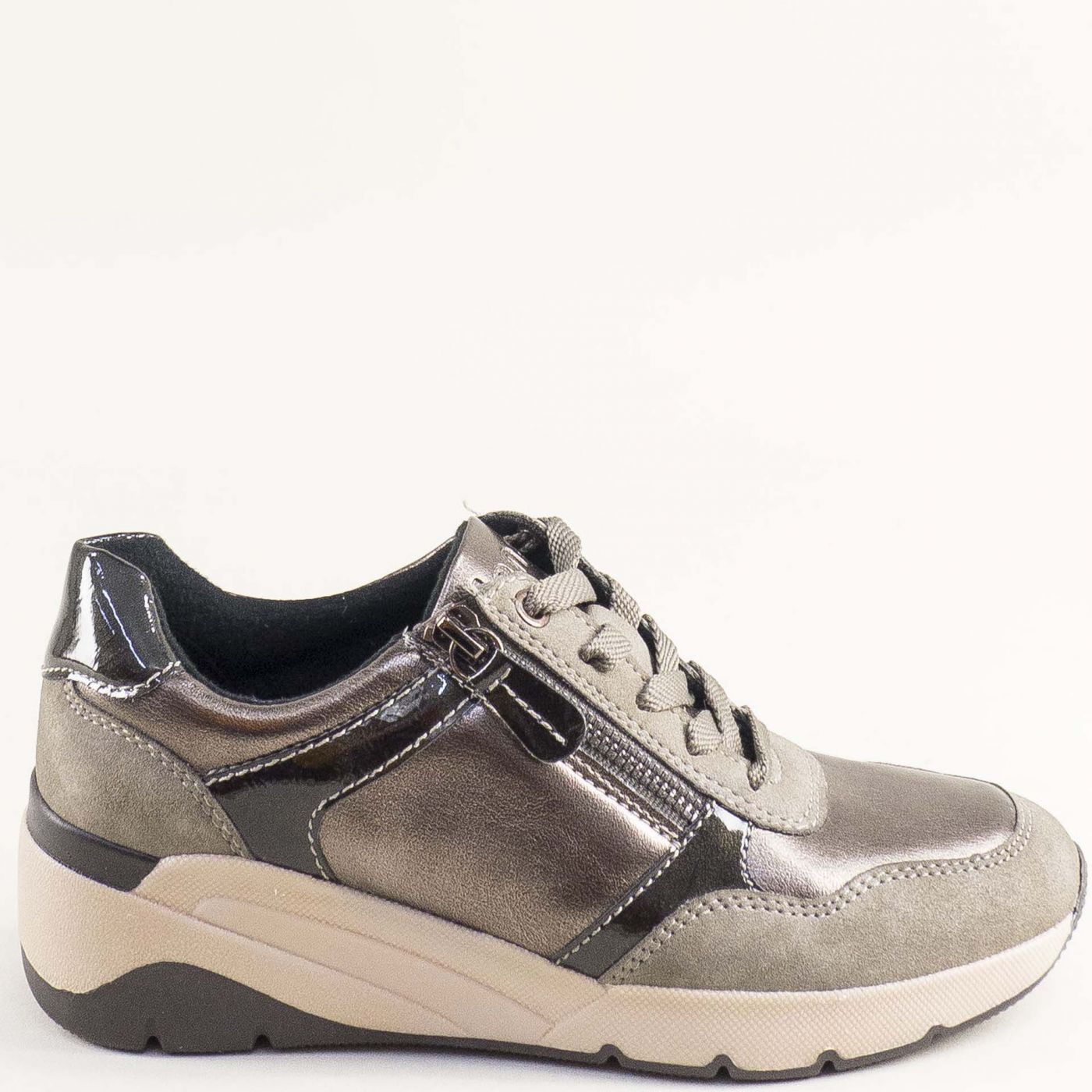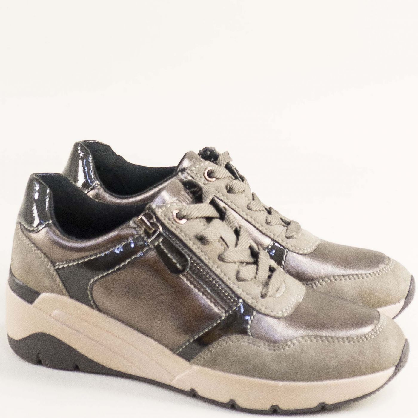 Дамски сникърси JANA с модерен дизайн и комбинация от бежов, черен и бронзов цвят 8-23763-349