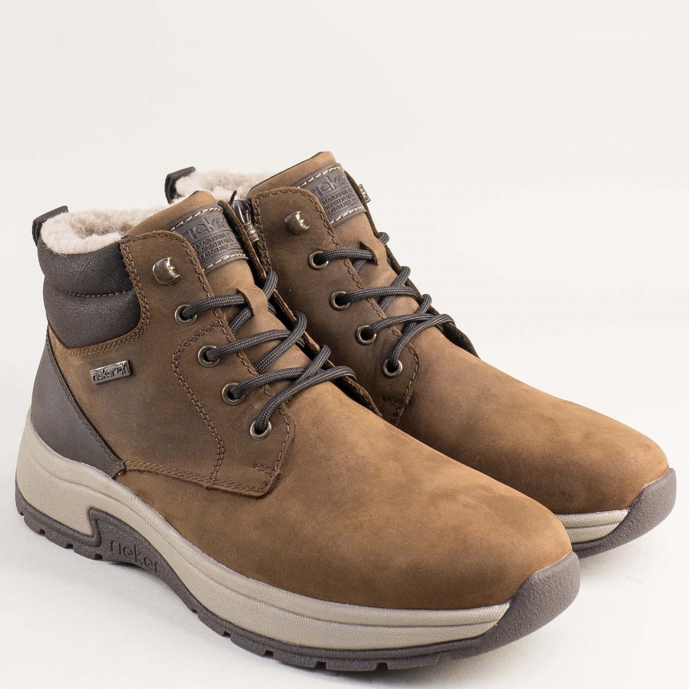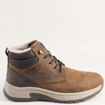 Естествен набук мъжки боти RIEKER с топъл хастар в кафяв цвят 11004-22