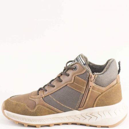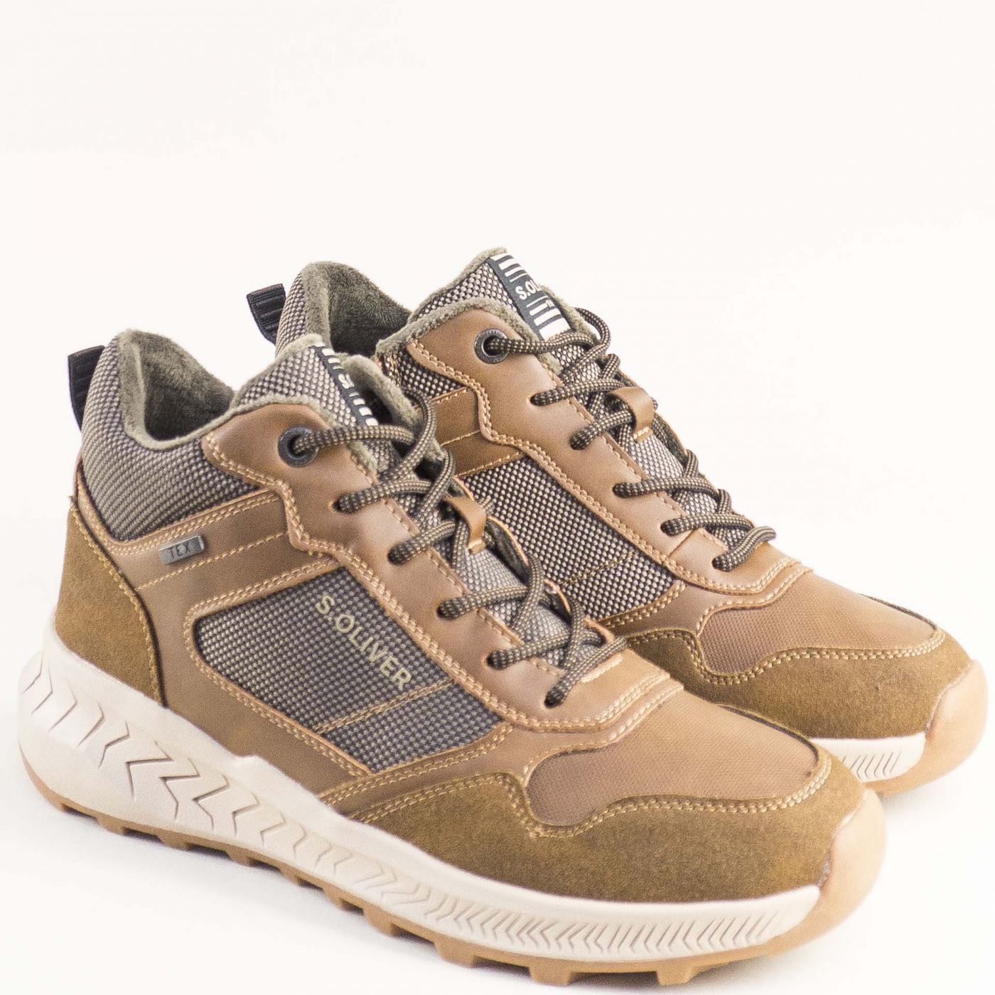 Спортни мъжки боти в модерен кафяв цвят S.OLIVER с цип и връзки 5-16256-318